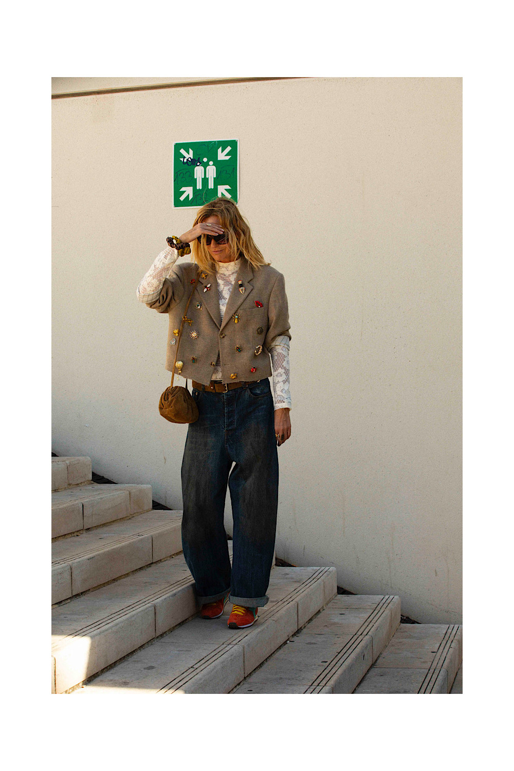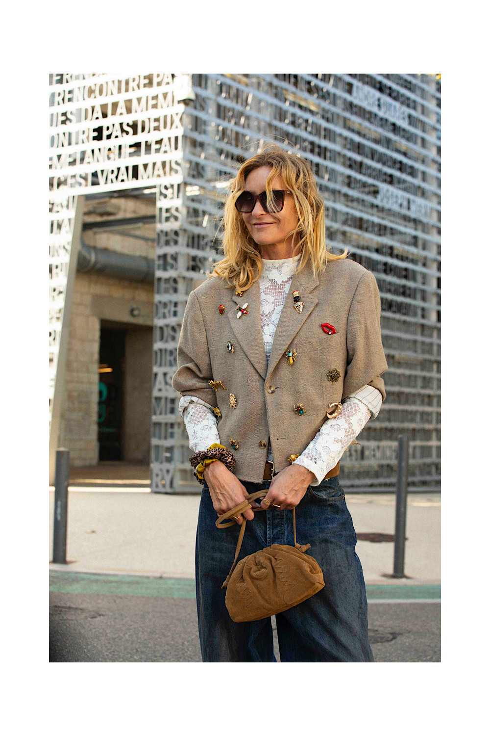 Caractéristiques : épaulettes, manches longues, 2 boutons, veste courte doublé, 1 poche côté coeur, façon tuide, pièce unique, plusieurs broches à motifs uniques.