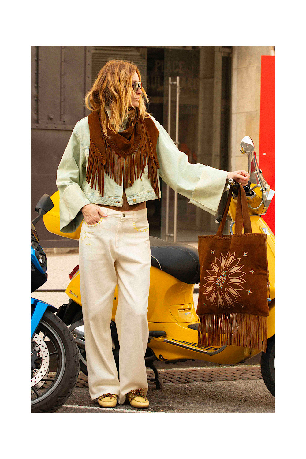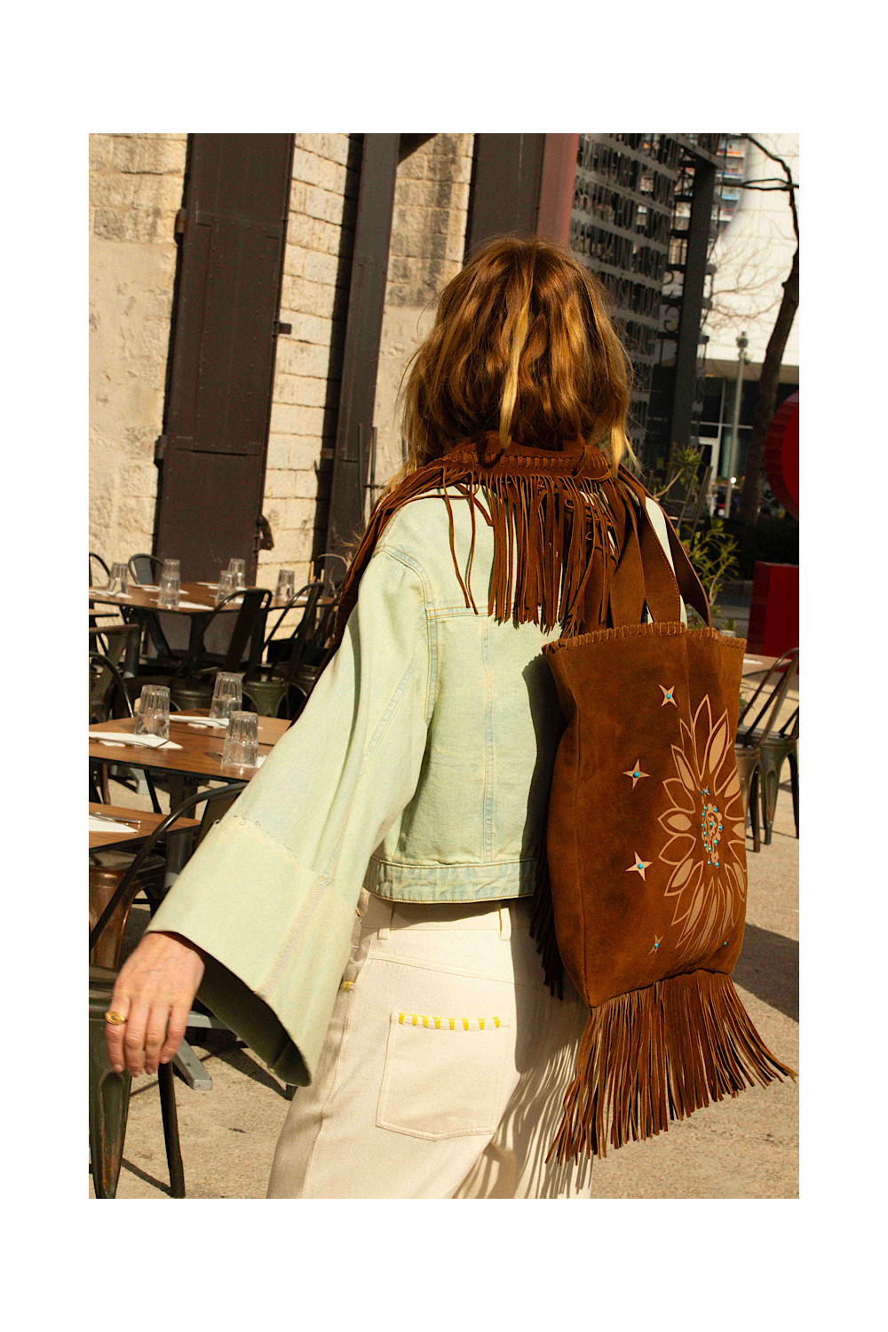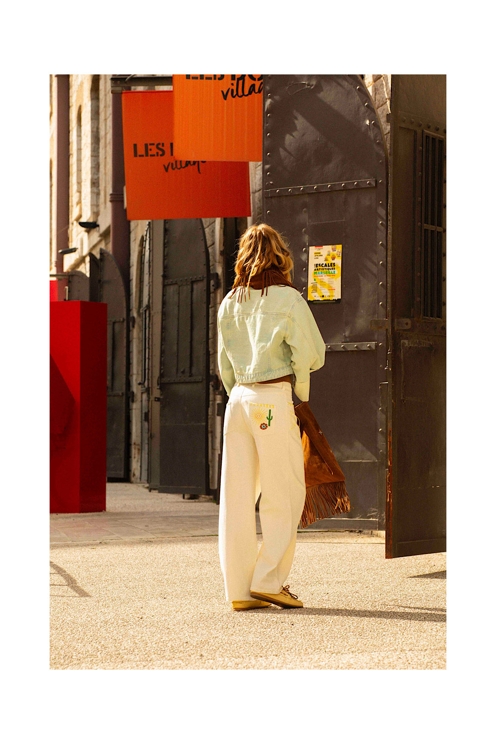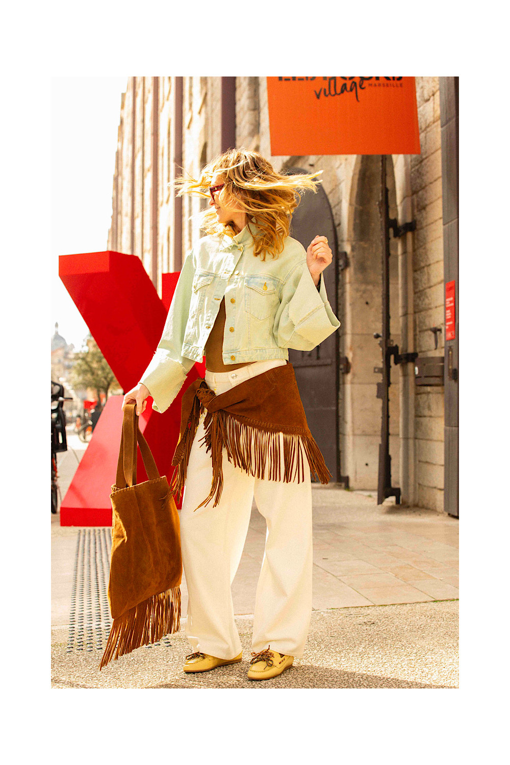 Veste ART en denim 100% coton délavé ; bleu clair avec un délavage vintage.