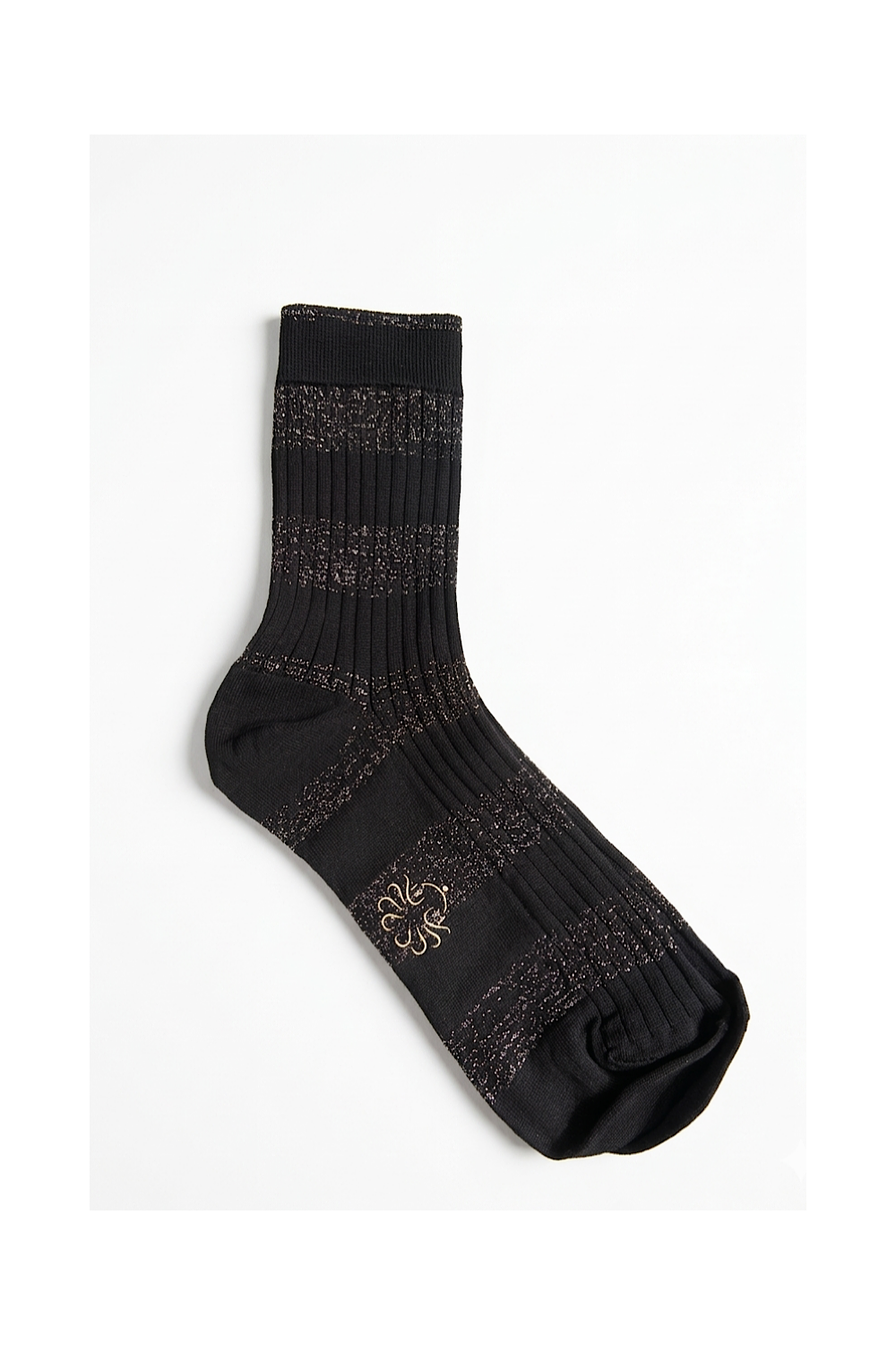 Chaussettes Erica Noir. Très douces couleur noir avec larges bandes en lurex noir pailletée.