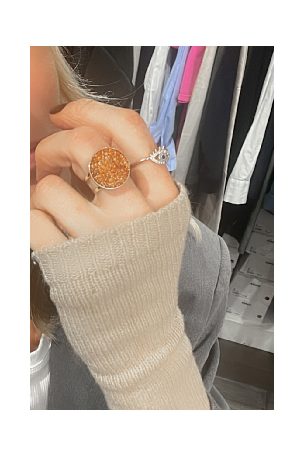 Bague ronde en acier inoxydable et composée en pierres semies precieuses hessonite.