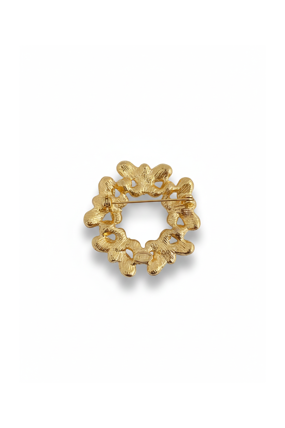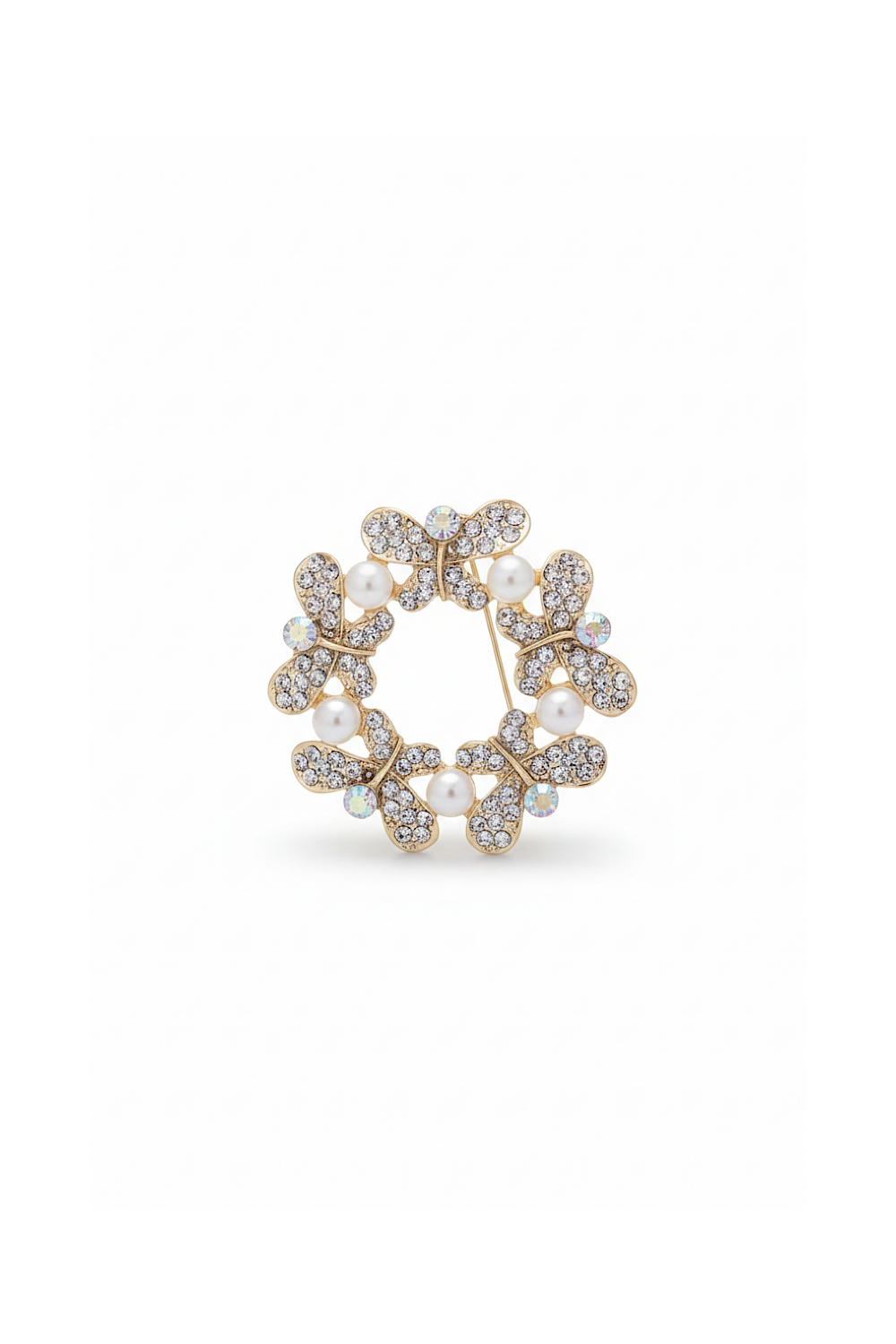Doré en acier inoxydable serti strasse argenté en oxyde de zirconium et pierres façon perles.