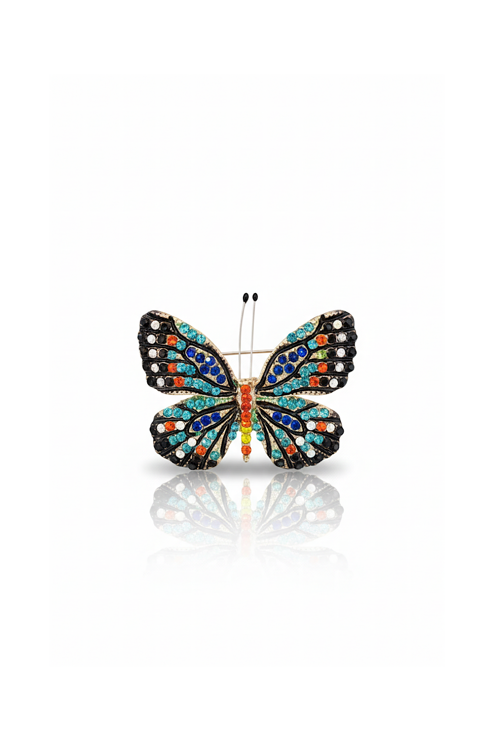Doré en acier inoxydable avec papillon serti strasse de couleur bleu,noir en oxyde de zirconium