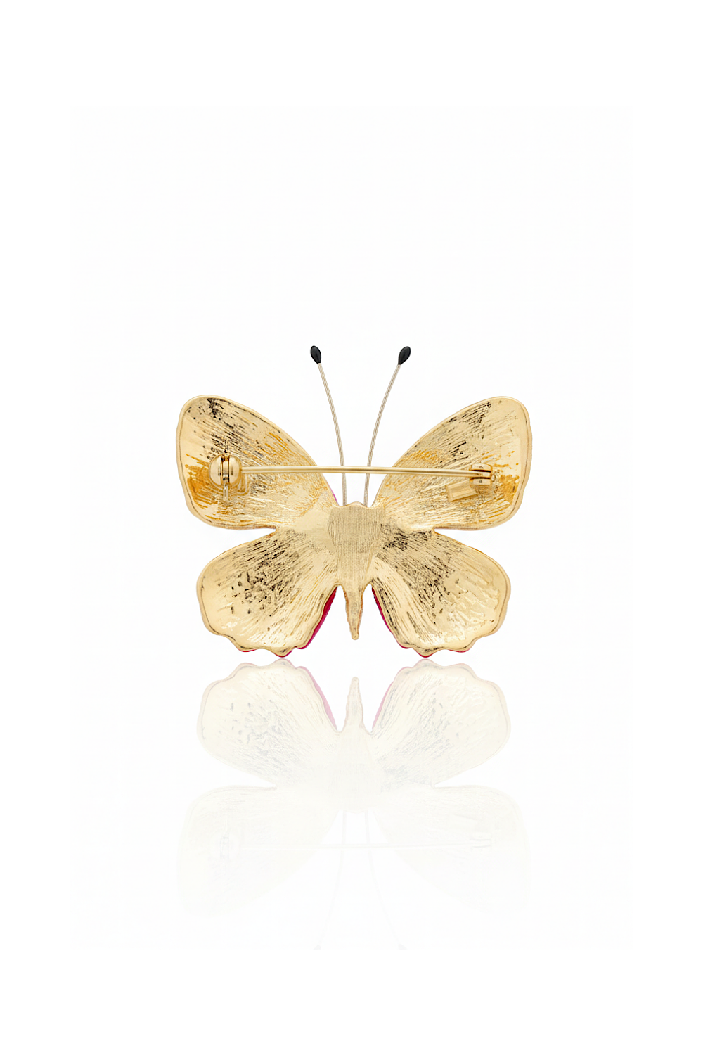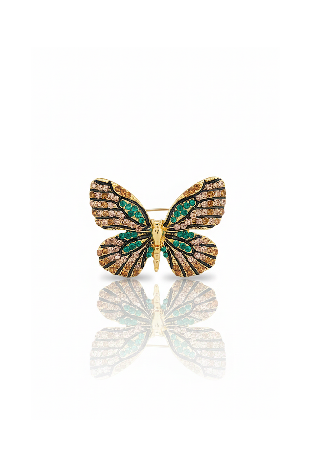 Doré en acier inoxydable avec papillon serti strasse de couleur bronze et vert en oxyde de zirconium