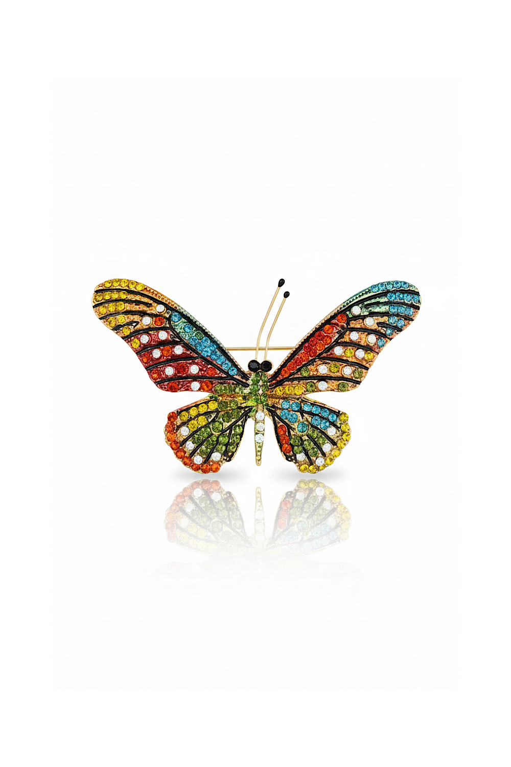 Doré en acier inoxydable avec papillon serti strasse de couleur varié ; bronze, jaune et vert en oxyde de zirconium