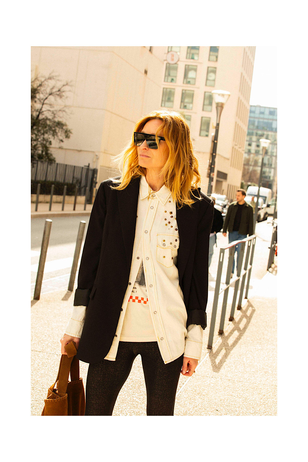 Caractéristiques : veste blazer noir, manches longues, 2 fausses poches, 1 boutons, épaulettes, étoile dorée souvenir