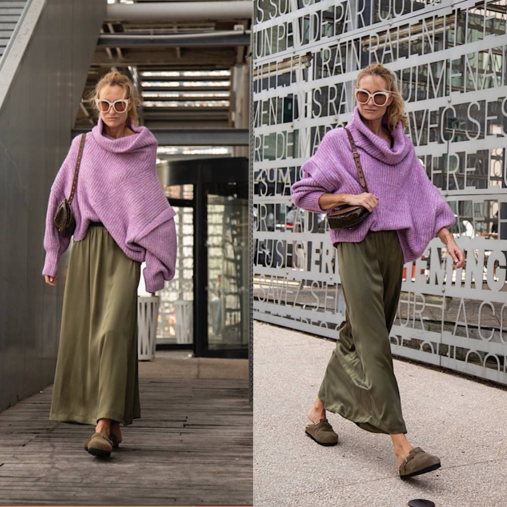 Karma Koma s’inscrit également dans la tendance de la jupe longue. Mais cette fois-ci, on vous propose la Jupe Longue Sama Maquis en soie. Elle vient souligner tous vos mouvements et sa couleur kaki vient parfaitement rappeler l’automne. Vous pouvez la porter avec un col roulé pour casser son côté léger et fin. Ou encore, avec un haut moulant pour mettre l’accent sur sa longueur.