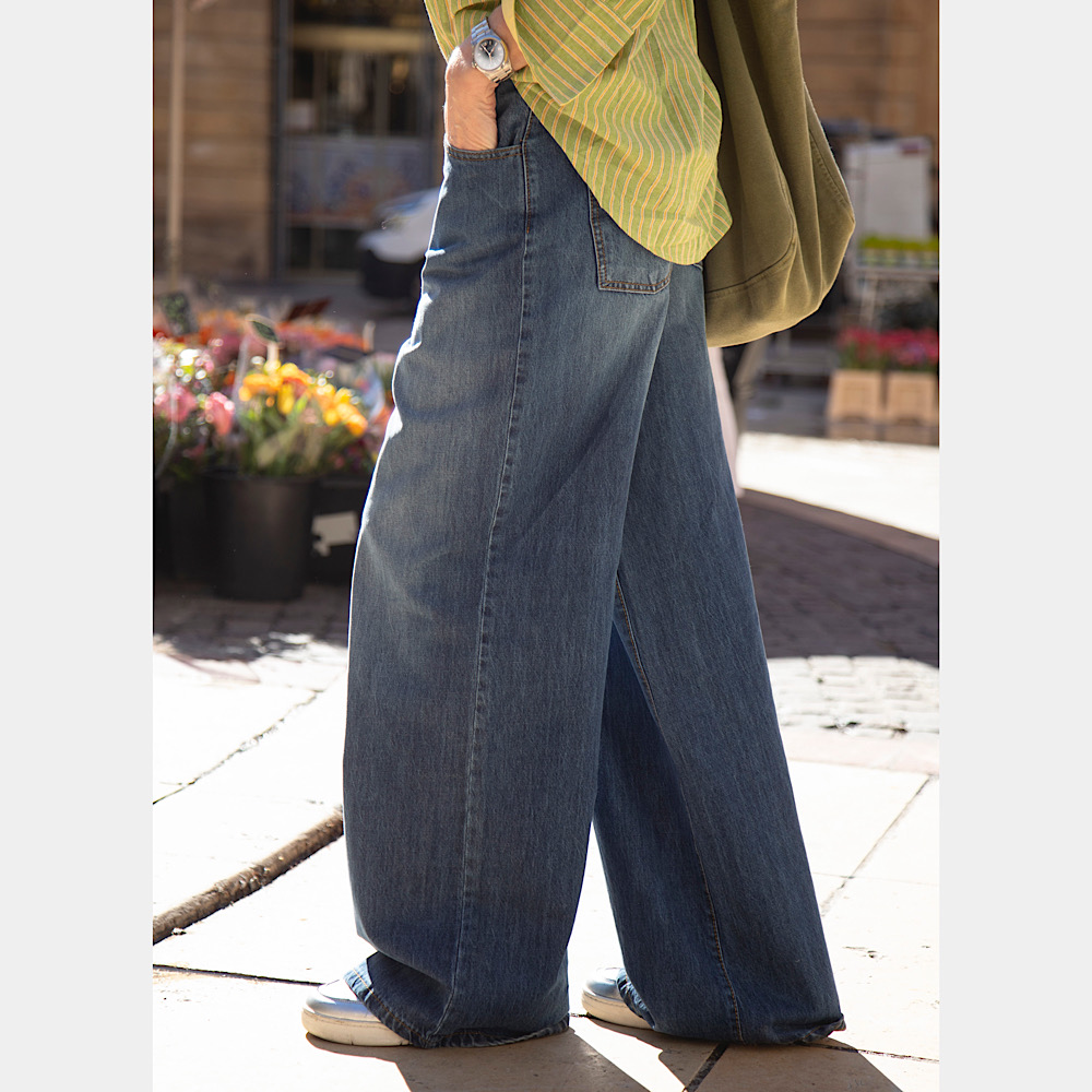 Élodie a craqué pour le Jean Denim Camden qui incarne un style en toute saison ! Une coupe droite et large pour un look confortable et stylé. Si vous aimez les looks décalés, ce jean est parfait pour accorder l’élégant et le streetwear.