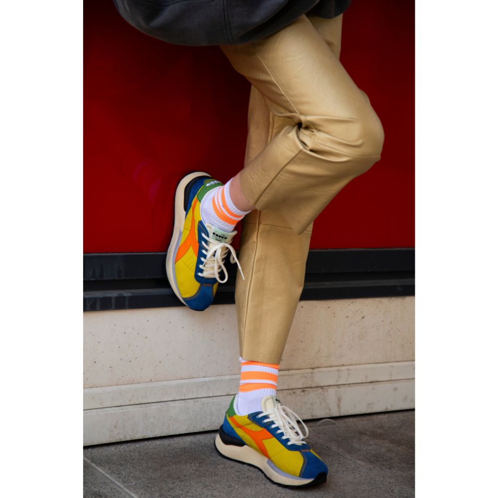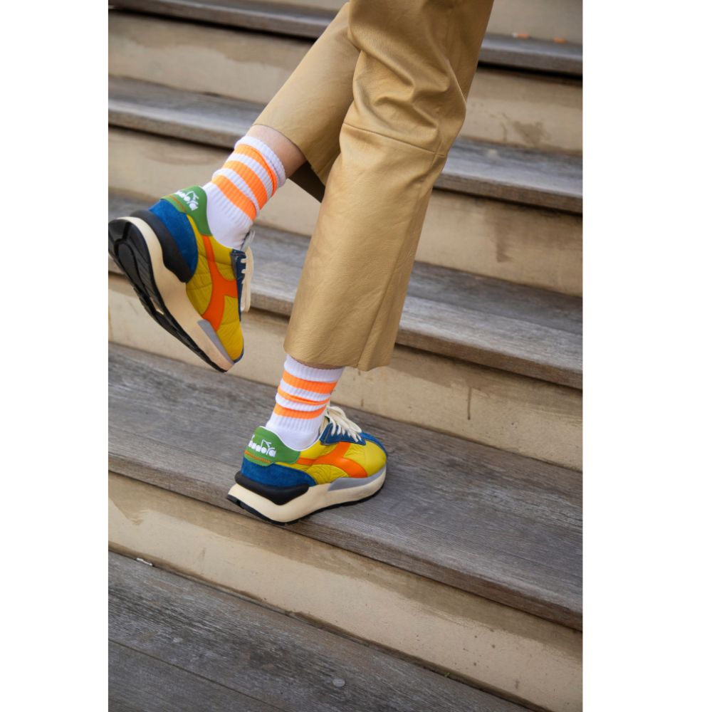 Les Baskets Mercury, de la marque Diadora, sont des sneakers basses au design rétro inspiré des années 70. Avec leur silhouette classique et leur style vintage, ces baskets combinent parfaitement l’héritage sportif de la marque avec les tendances actuelles.