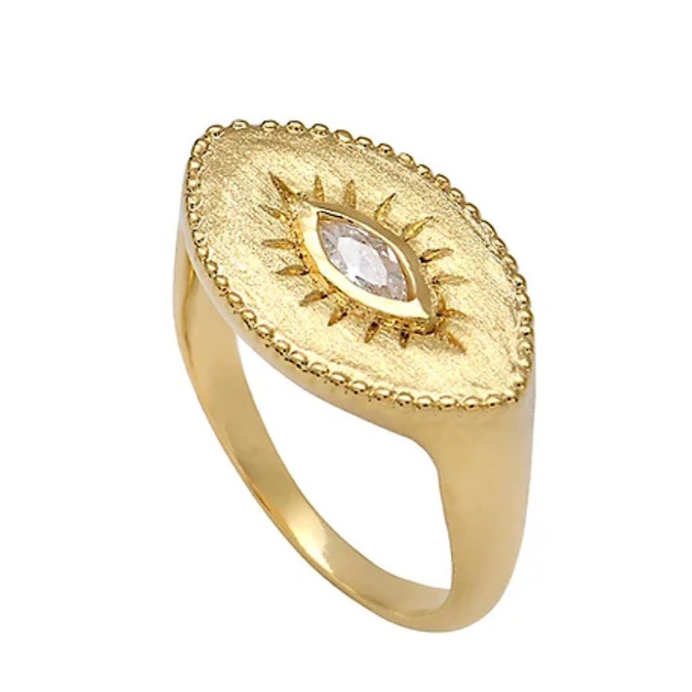 Ornée d’un oeil gravé et brossé la Bague Pilar, de la marque Louise Hendricks, apporte son charme à vos outfit. Sertie d’un zicron taille marquise, elle brille de mille feux et ajoute une touche irrésistible à votre style. Fabriquée en plaqué or 3 microns, cette bague est non seulement magnifique mais aussi un gage de qualité dans le temps.