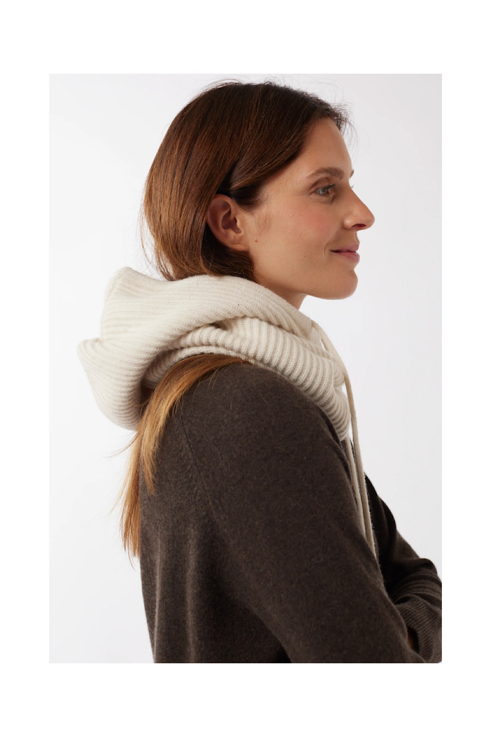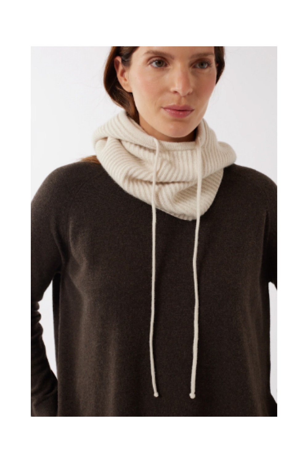 Caractéristiques : cagoule avec capuche et col, lien de serrage, maille côtelé, blanc cassé/écru
