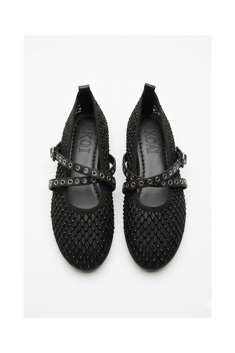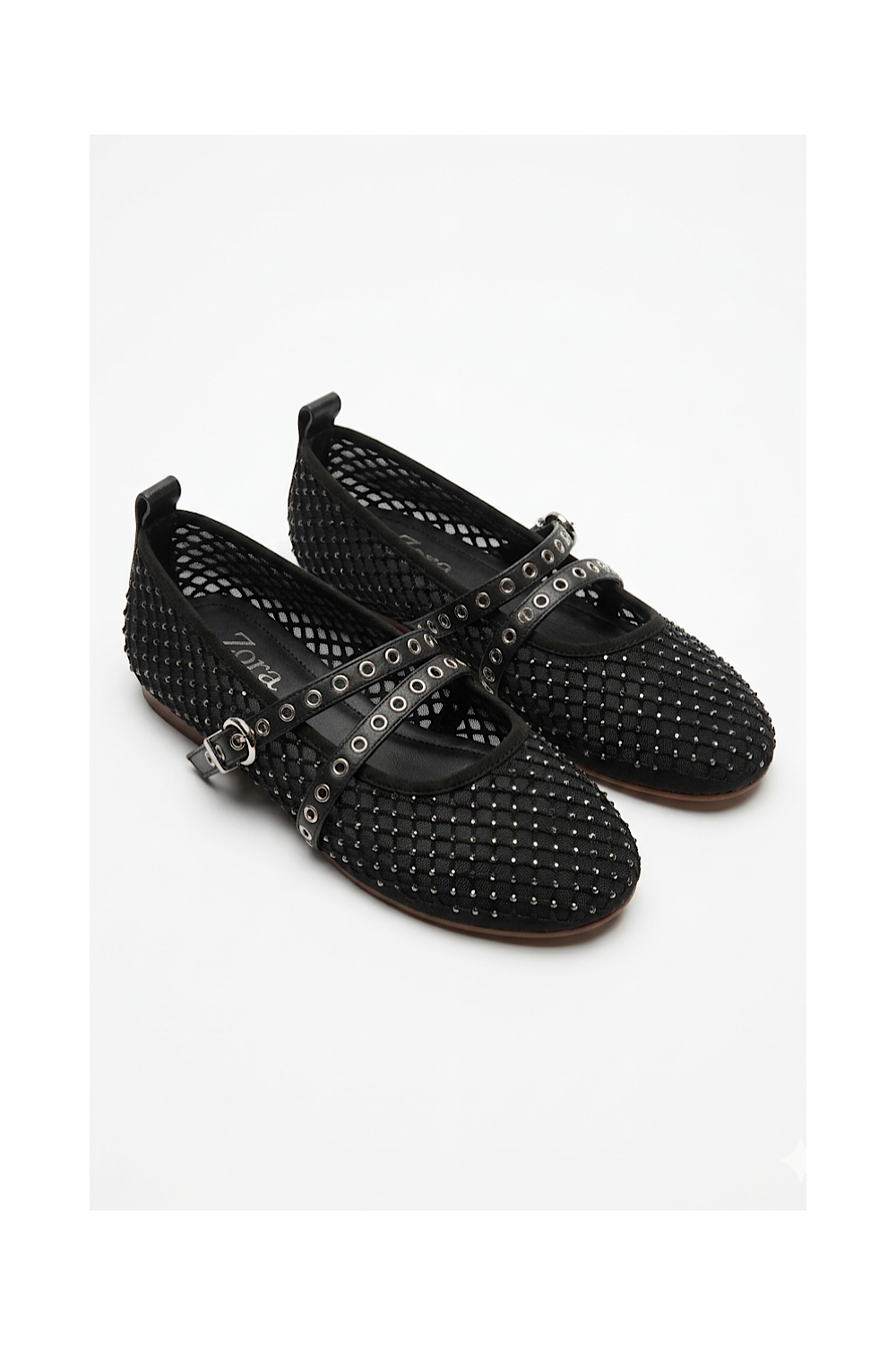 Ballerines Vilma souples couleur noir. Tissu résille qui "scintille" légèrement avec finitions cuir