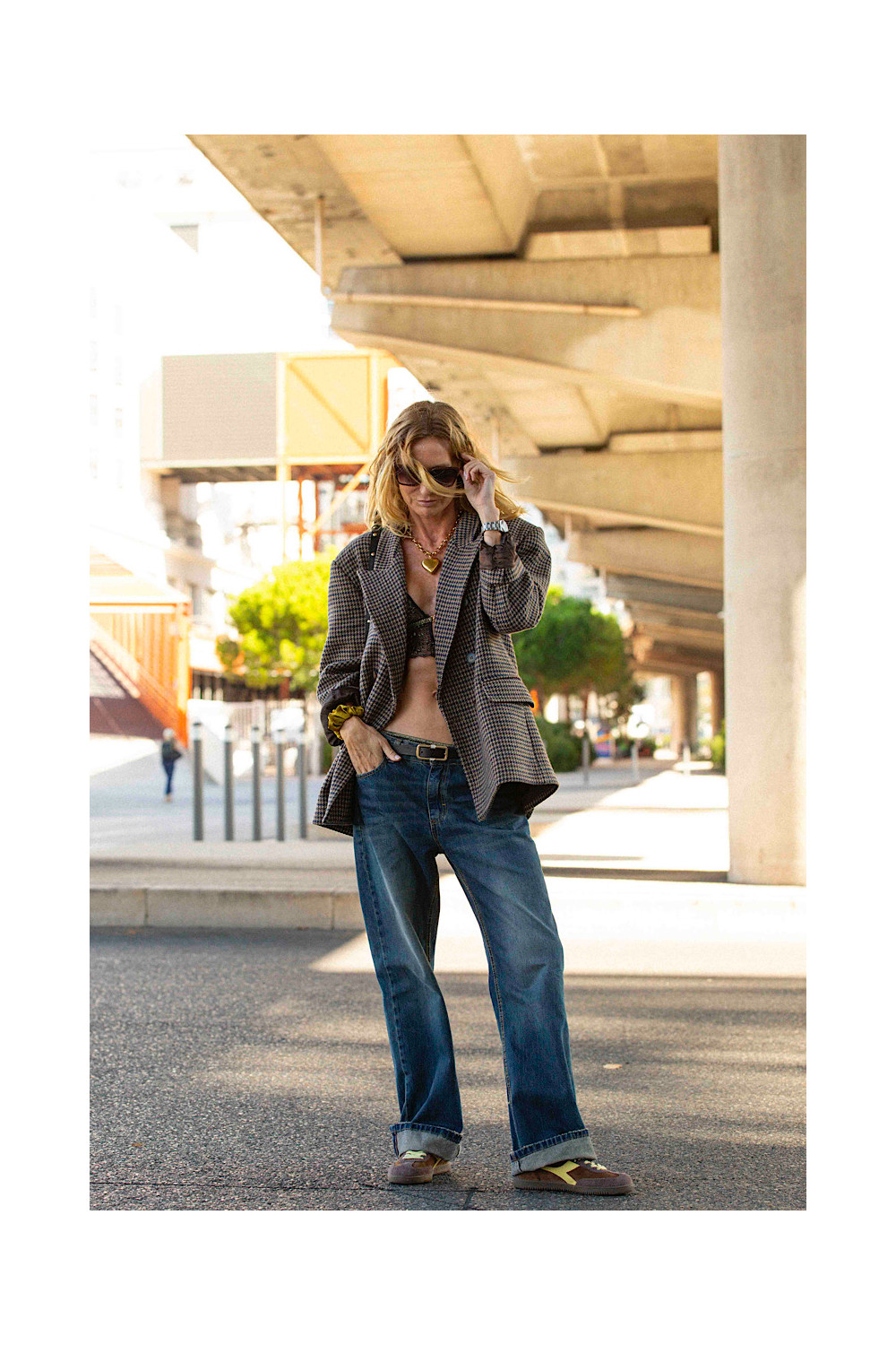 Composition : 59% polyamide, 16% polyamide recyclé, 9% élasthanne recyclé, 13% élasthanne, 3% lurex