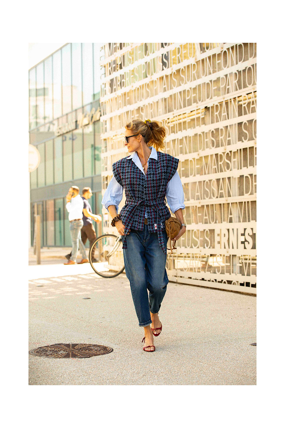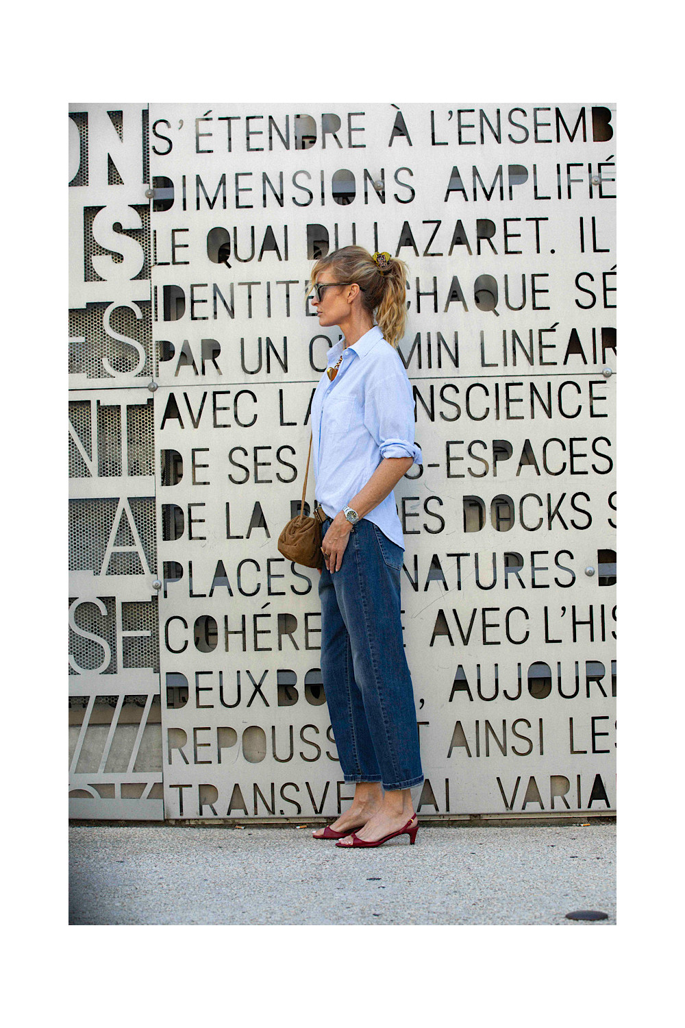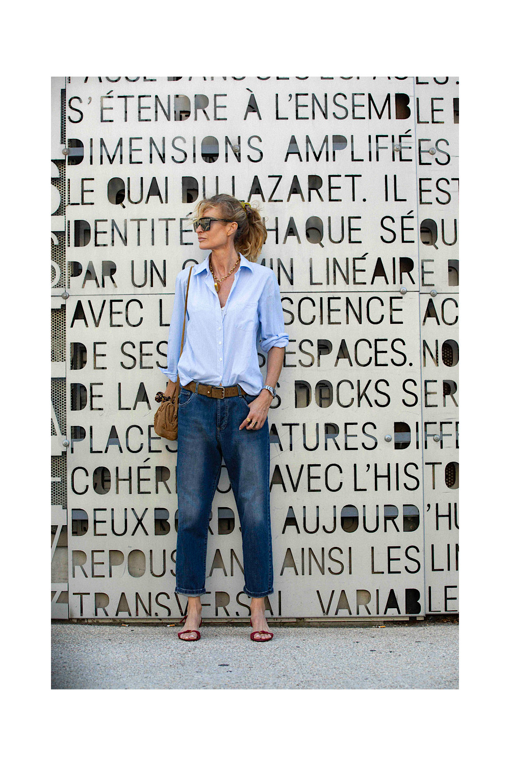 Caractéristiques : jean bleu slim, 5 poches, 4 boutons.