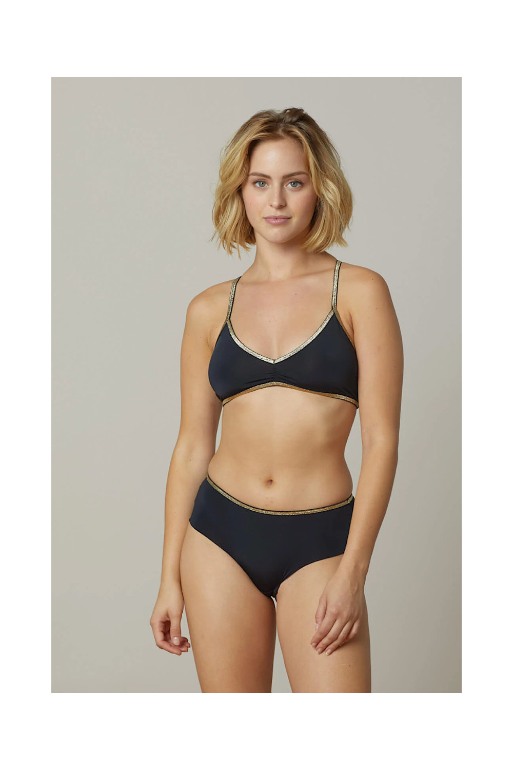 Caractéristique : élastiques et bretelles en lurex, fronces milieu devant