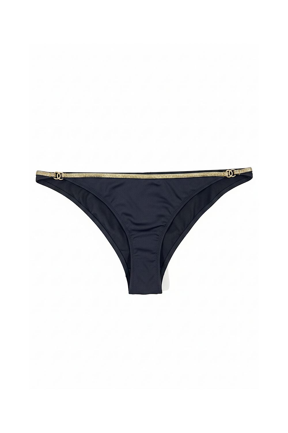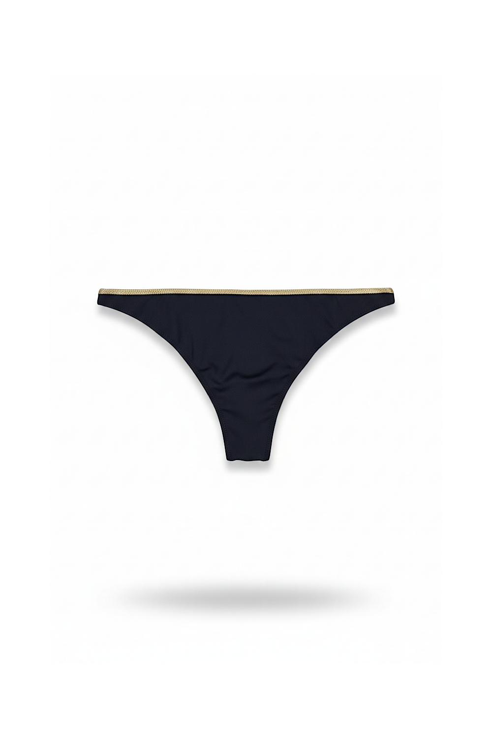 Caractéristiques : bas de maillot de bain tanga, échancrée sur l'arrière pour mettre en valeur les formes, fin sur les côtés pour un look féminin, chic et élégant aux rayures contrastées et avec des détails de lurex sur le blanc