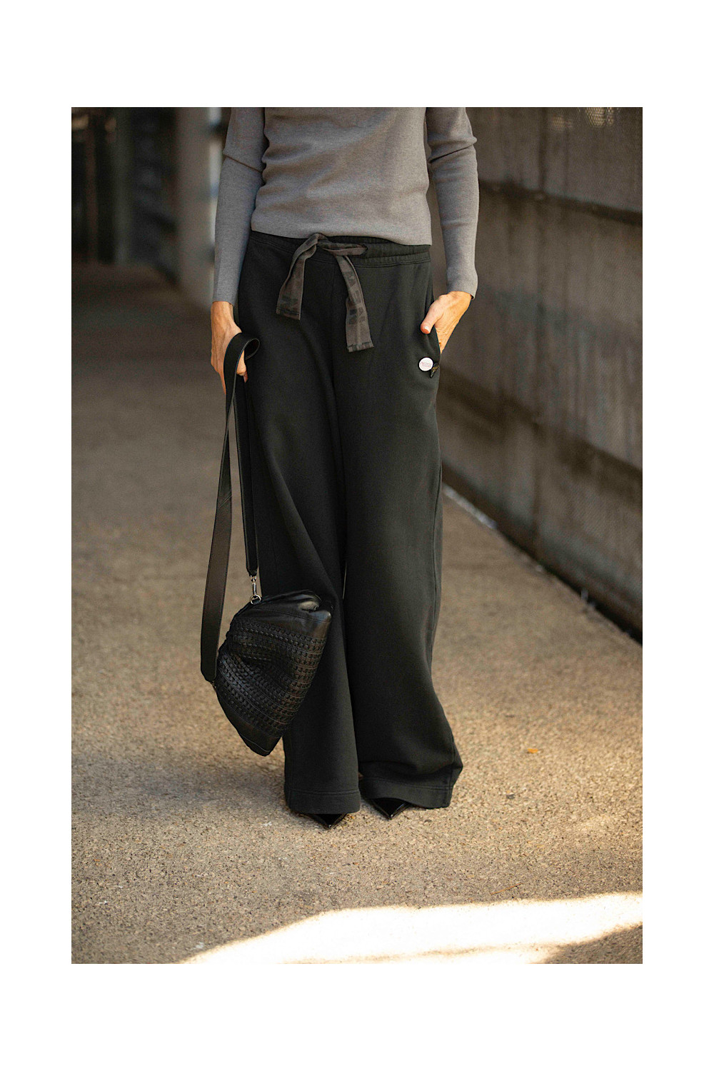 Caractéristiques : coupe flare, tissu doux lavé, deux poches sur les côtés, élastiqué à la taille avec un gros lien de serrage, un badge et un médiator côté poche. (Ce jogging taille grand, prendre une taille en dessous).