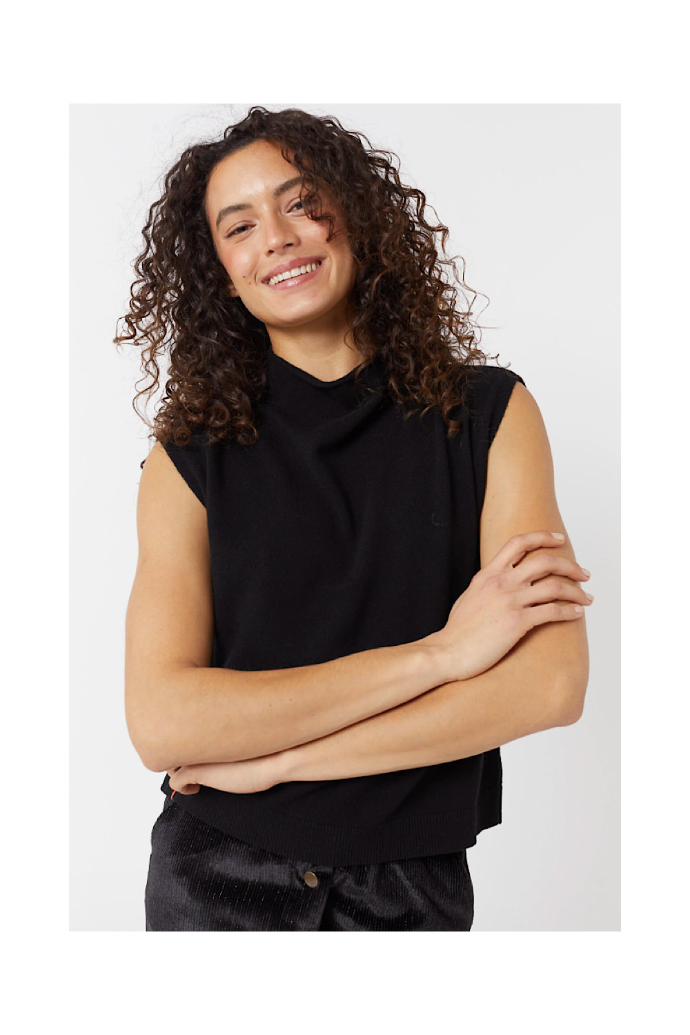 Le Pull Olympe Sans Manches Off Noir de la marque Maevy Mouvement Libre