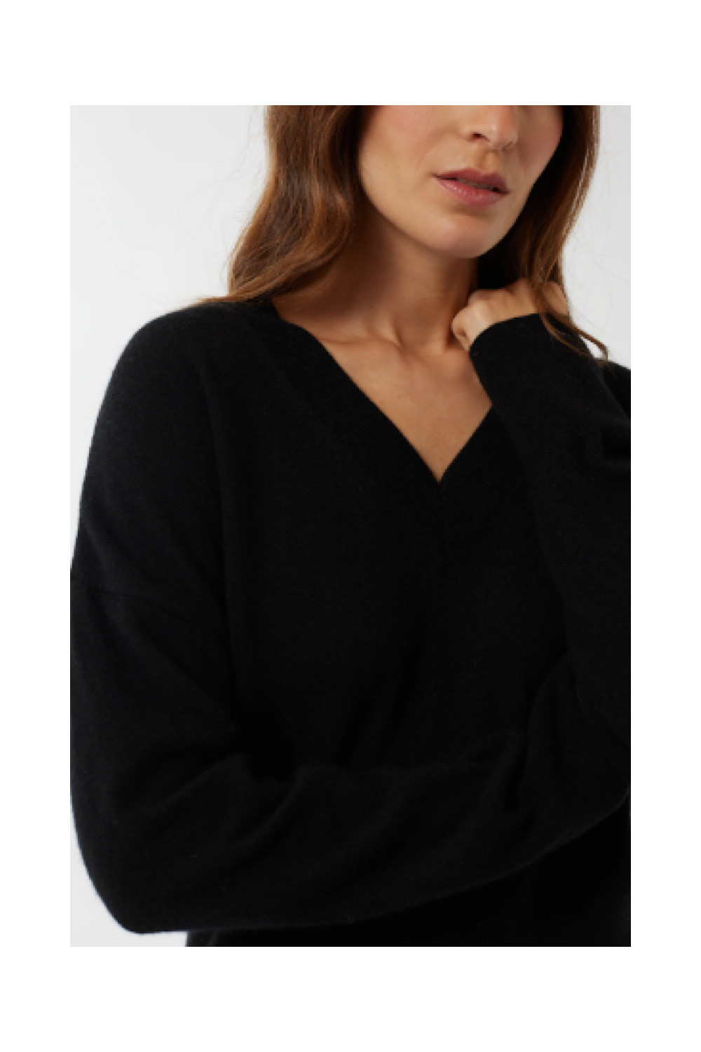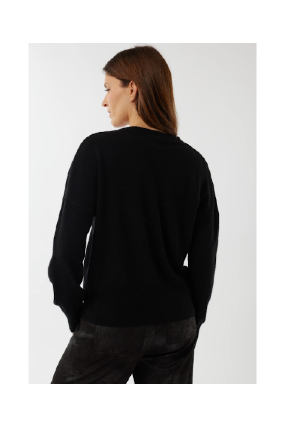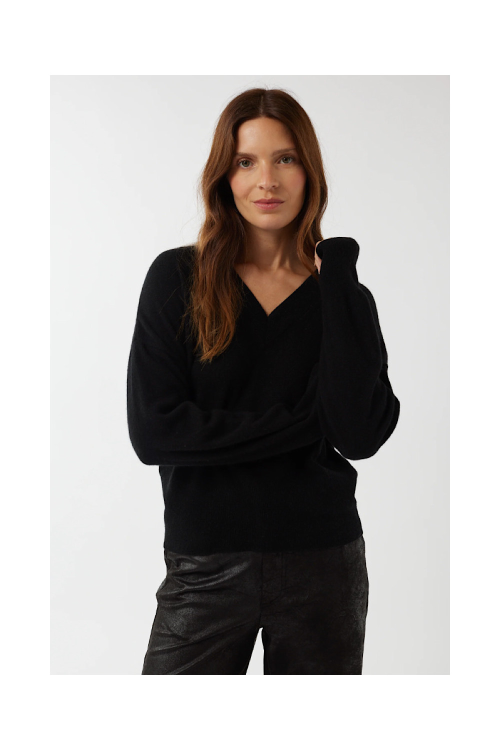 Le Pull Loup Col V Noir de la marque Maevy Mouvement Libre