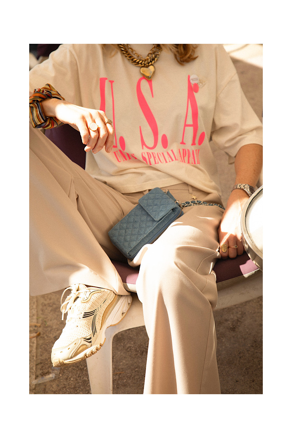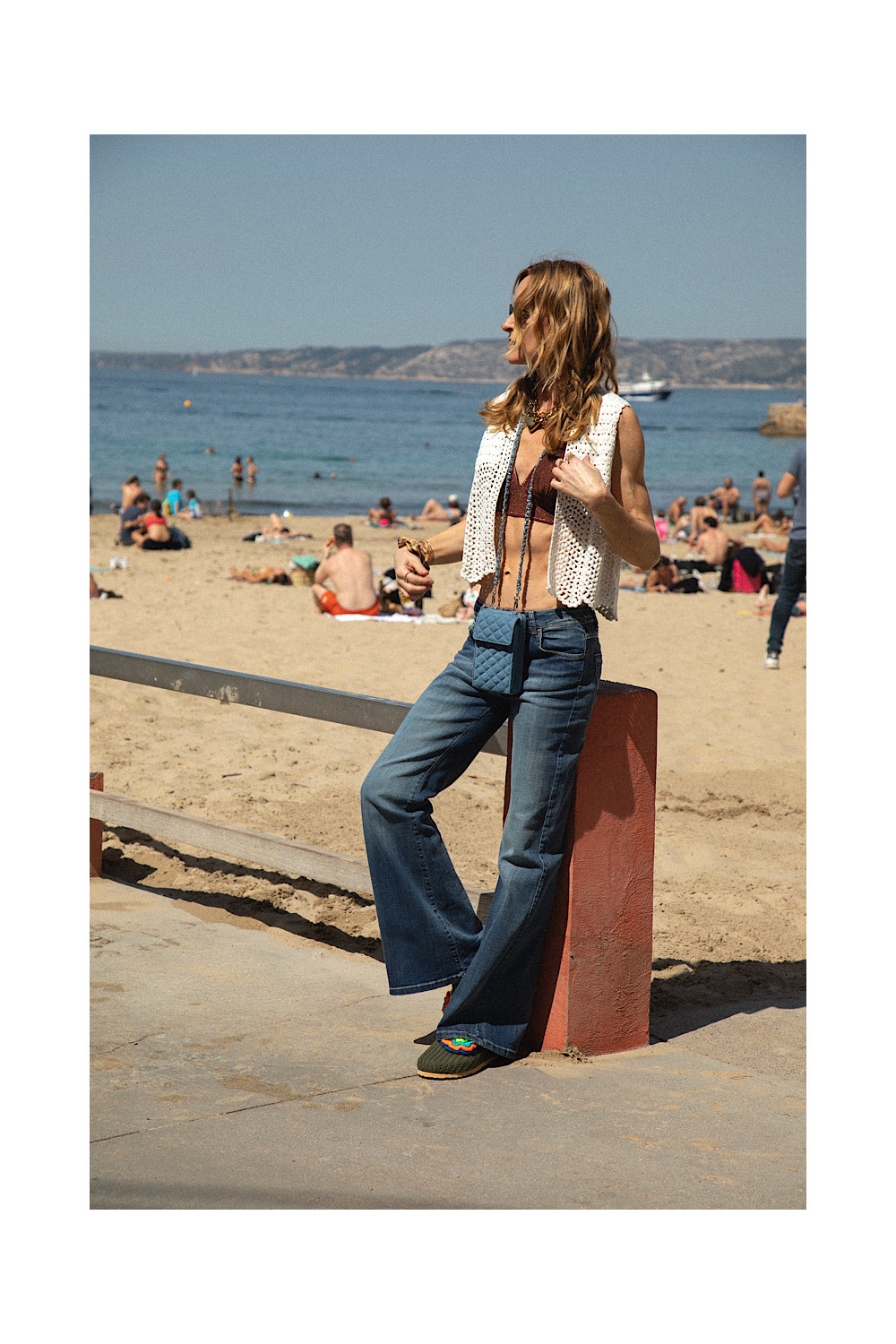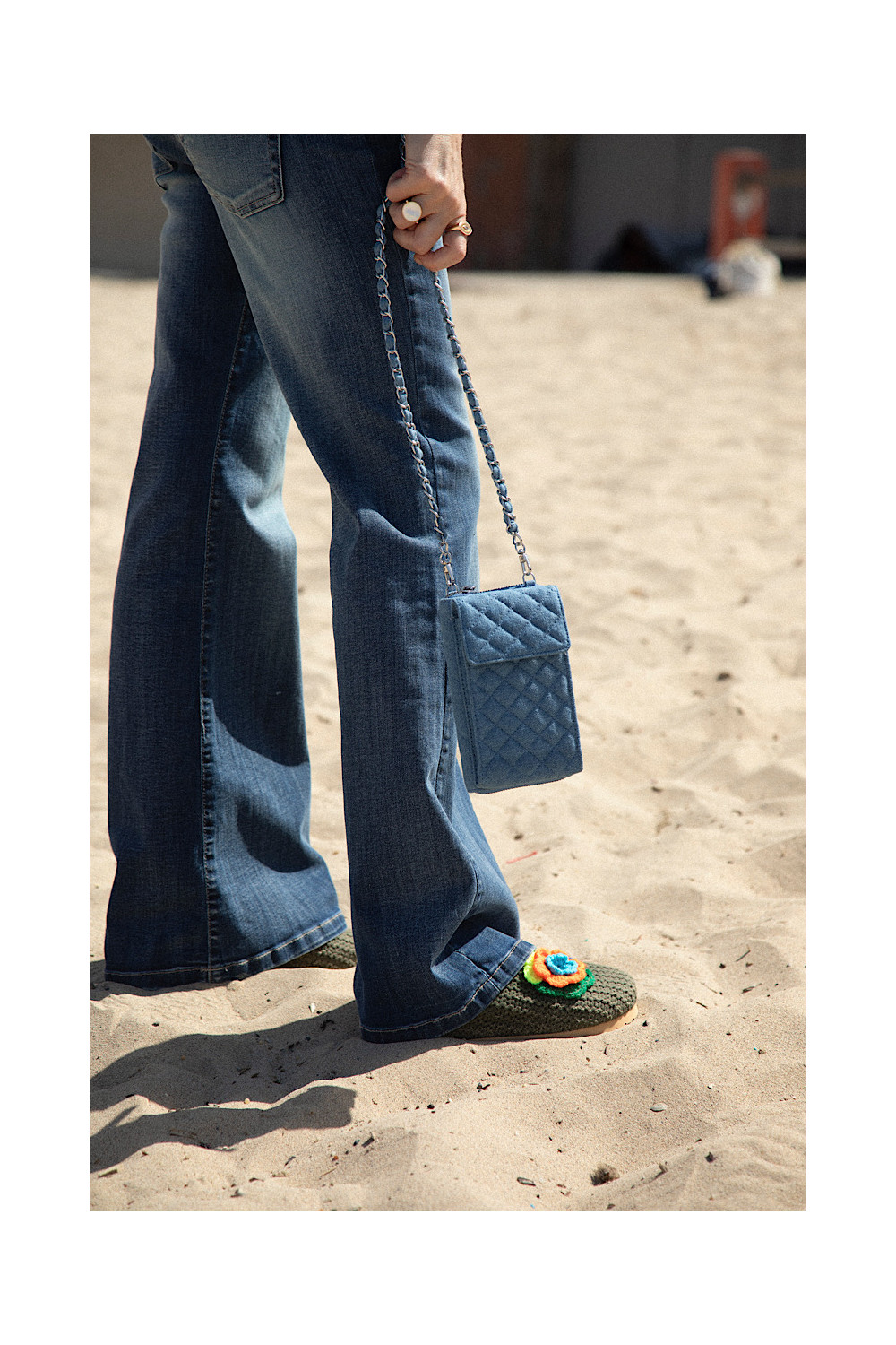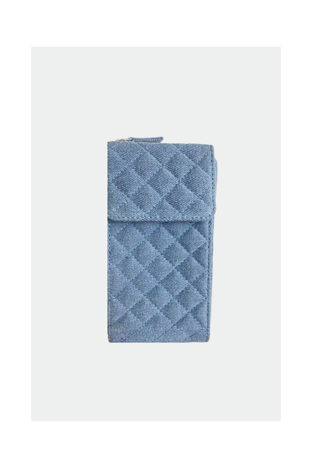 Caractéristiques : pochette denim, double compartiment portefeuille, compartiment téléphone, finitions métalliques, bandoulière amovible en cuir