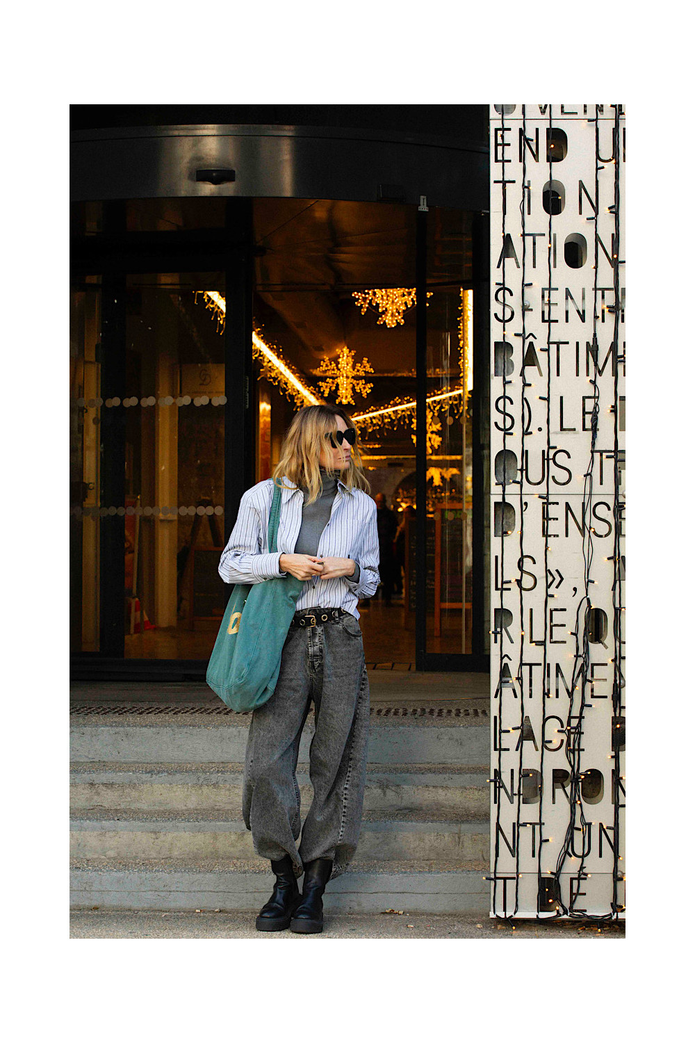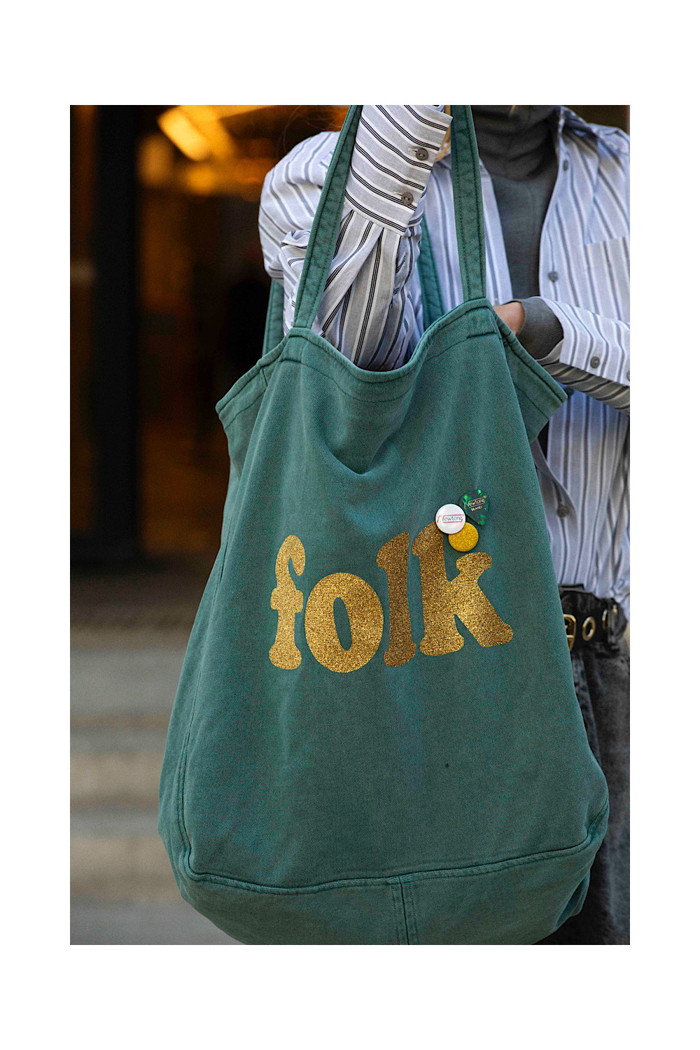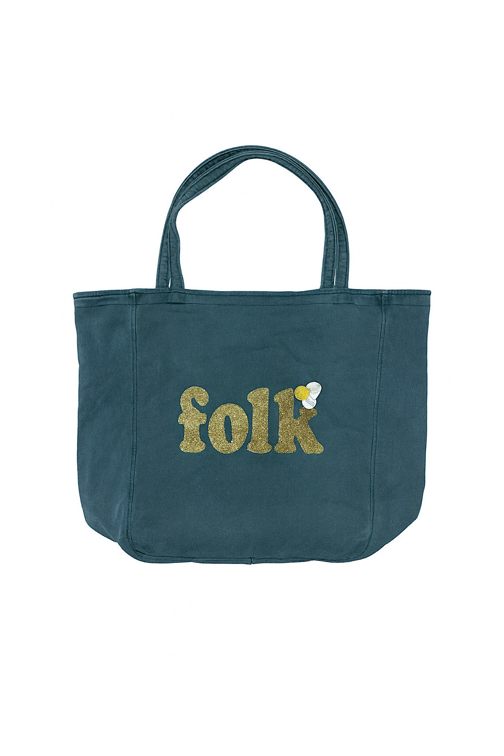 Caractéristiques : bag bleu/vert lagon, symbole "folk" doré paillettes, 3 badges
