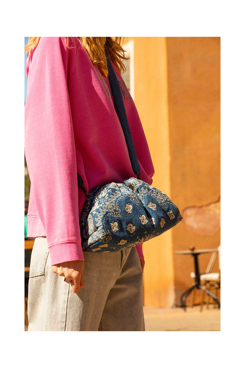 Sac Denim Bandana bleu avec broderies ecru