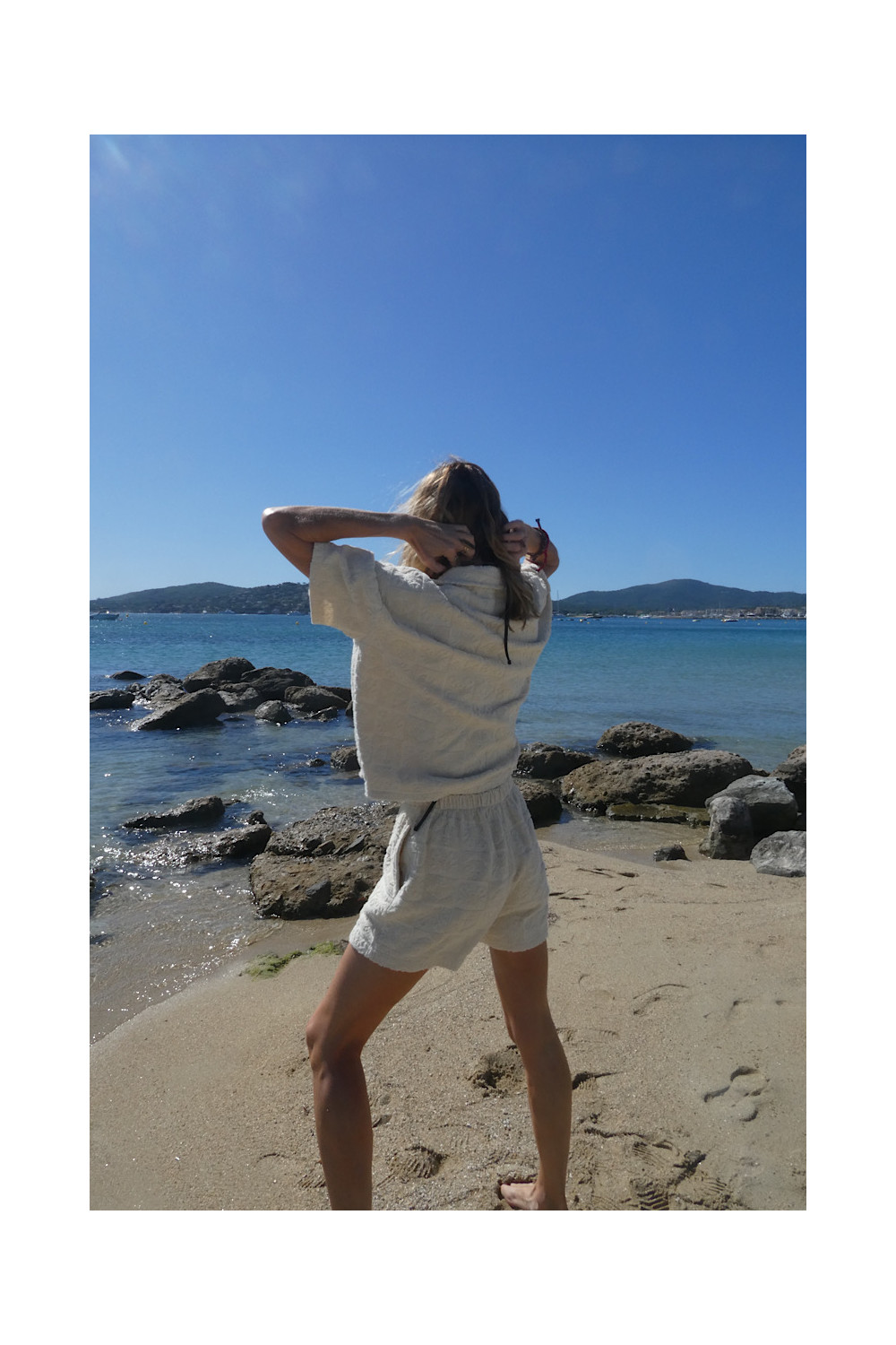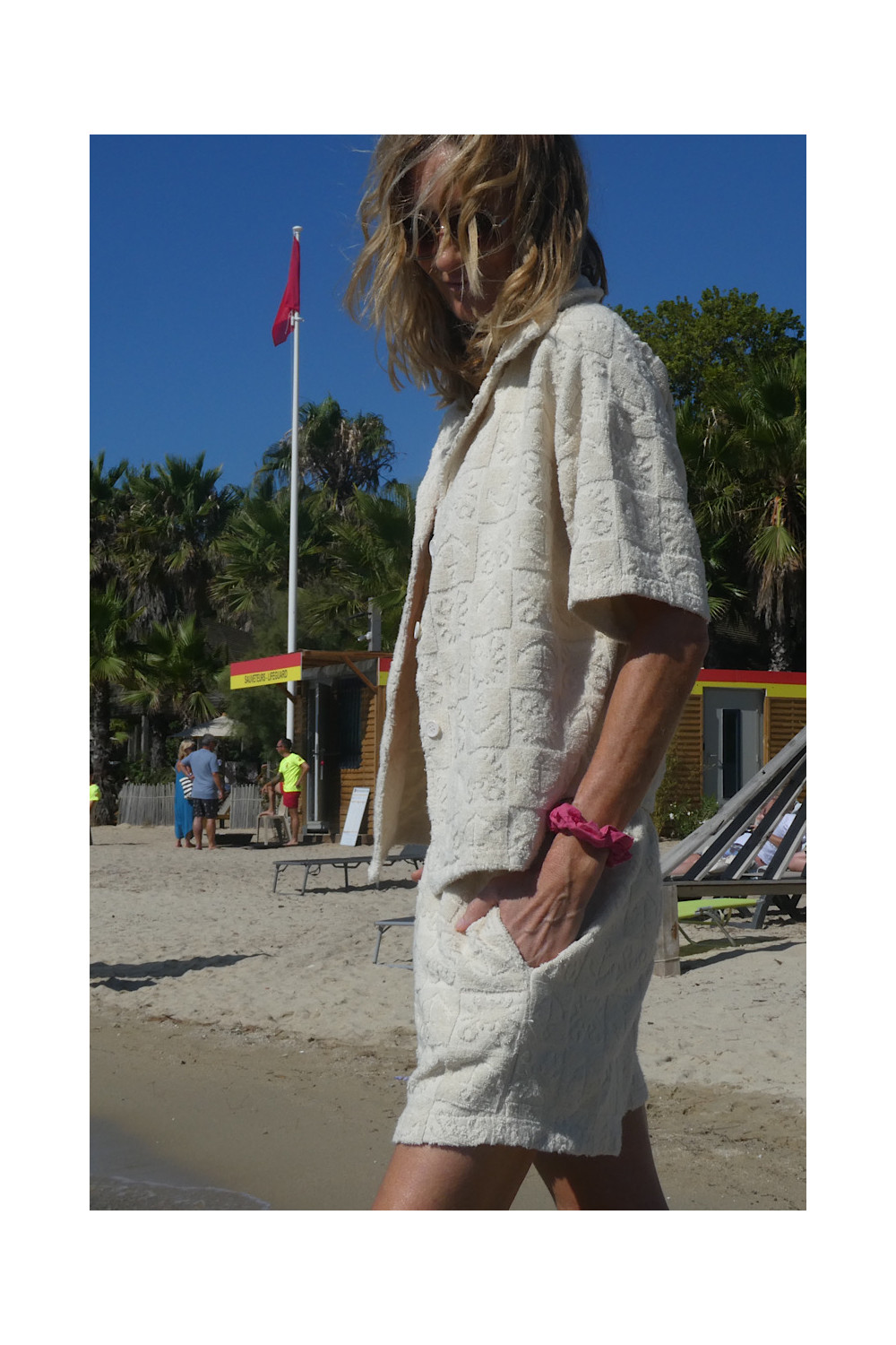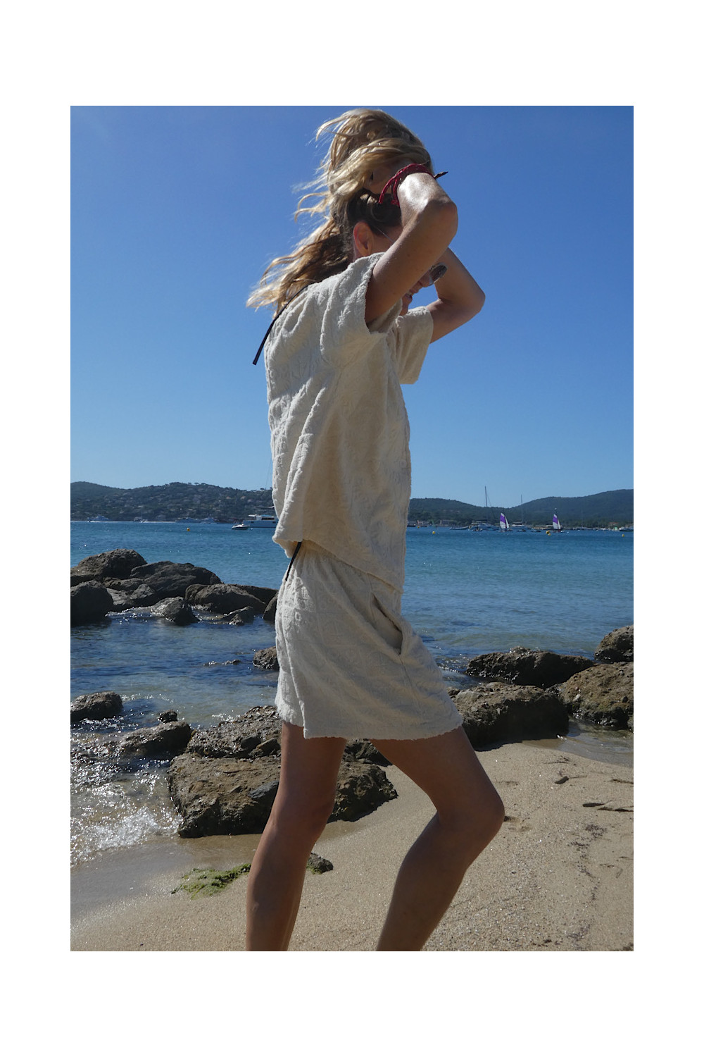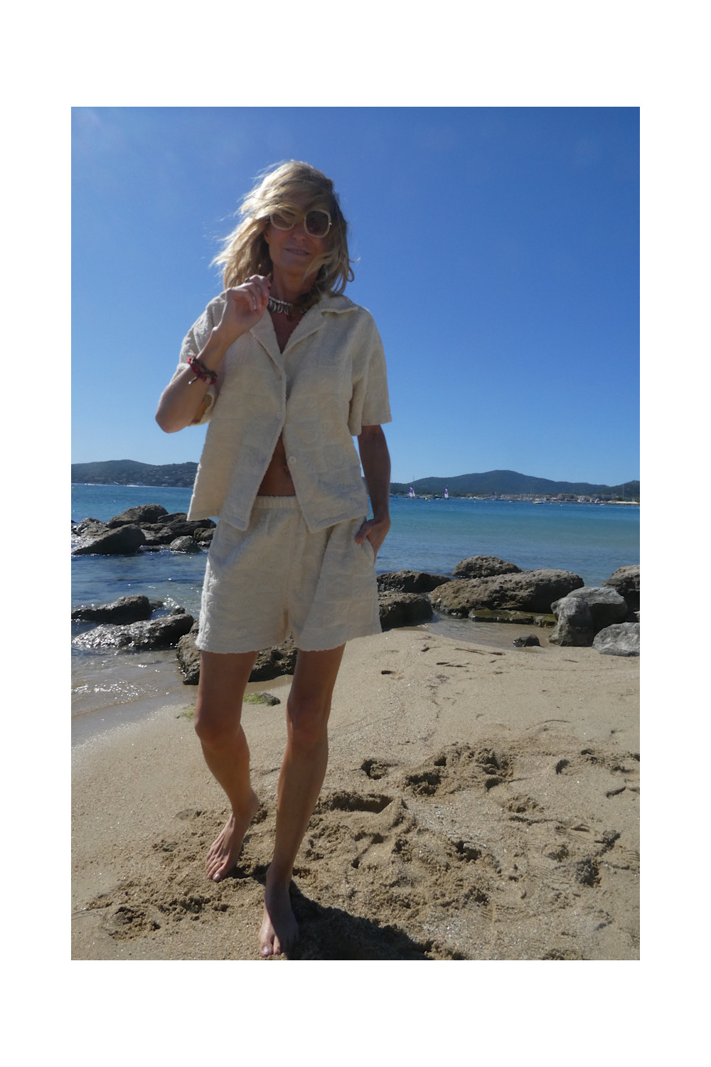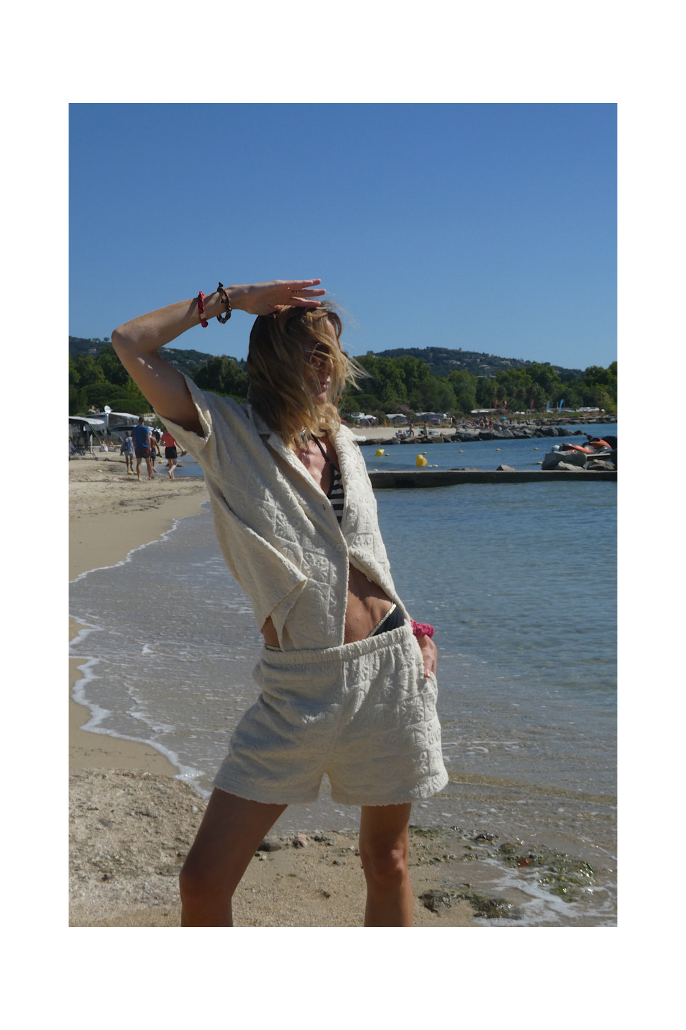 Caractéristiques : short ecru, élastique à la taille, 2 poches, relief , matière éponge