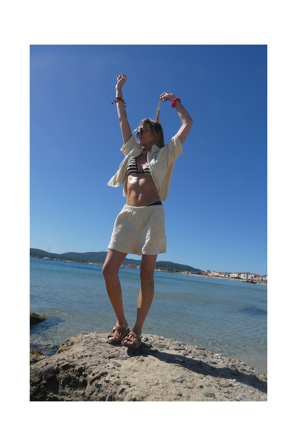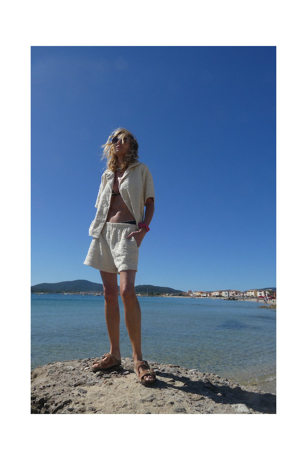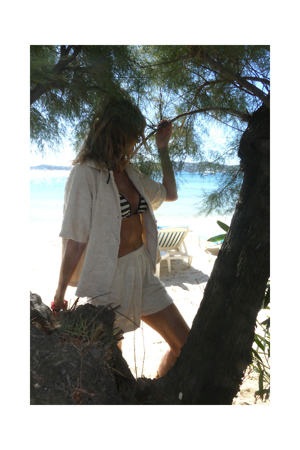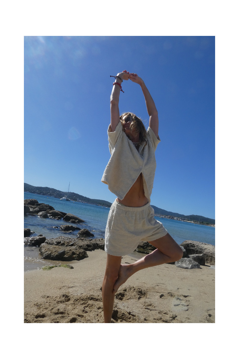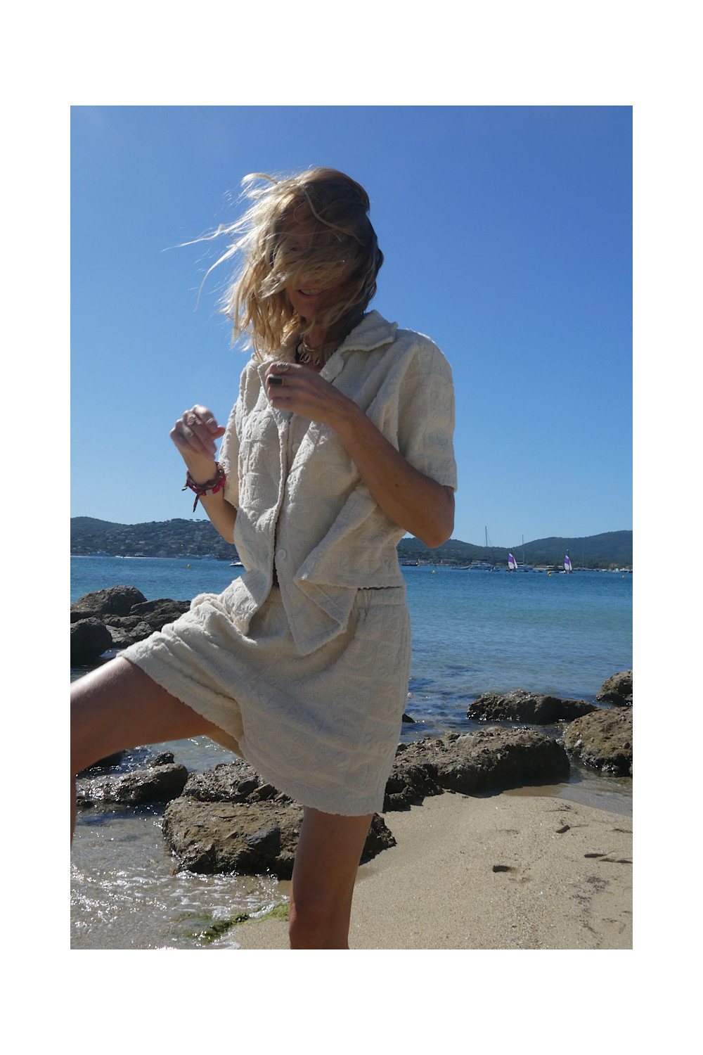 Caractéristiques : short ecru, élastique à la taille, 2 poches, relief , matière éponge