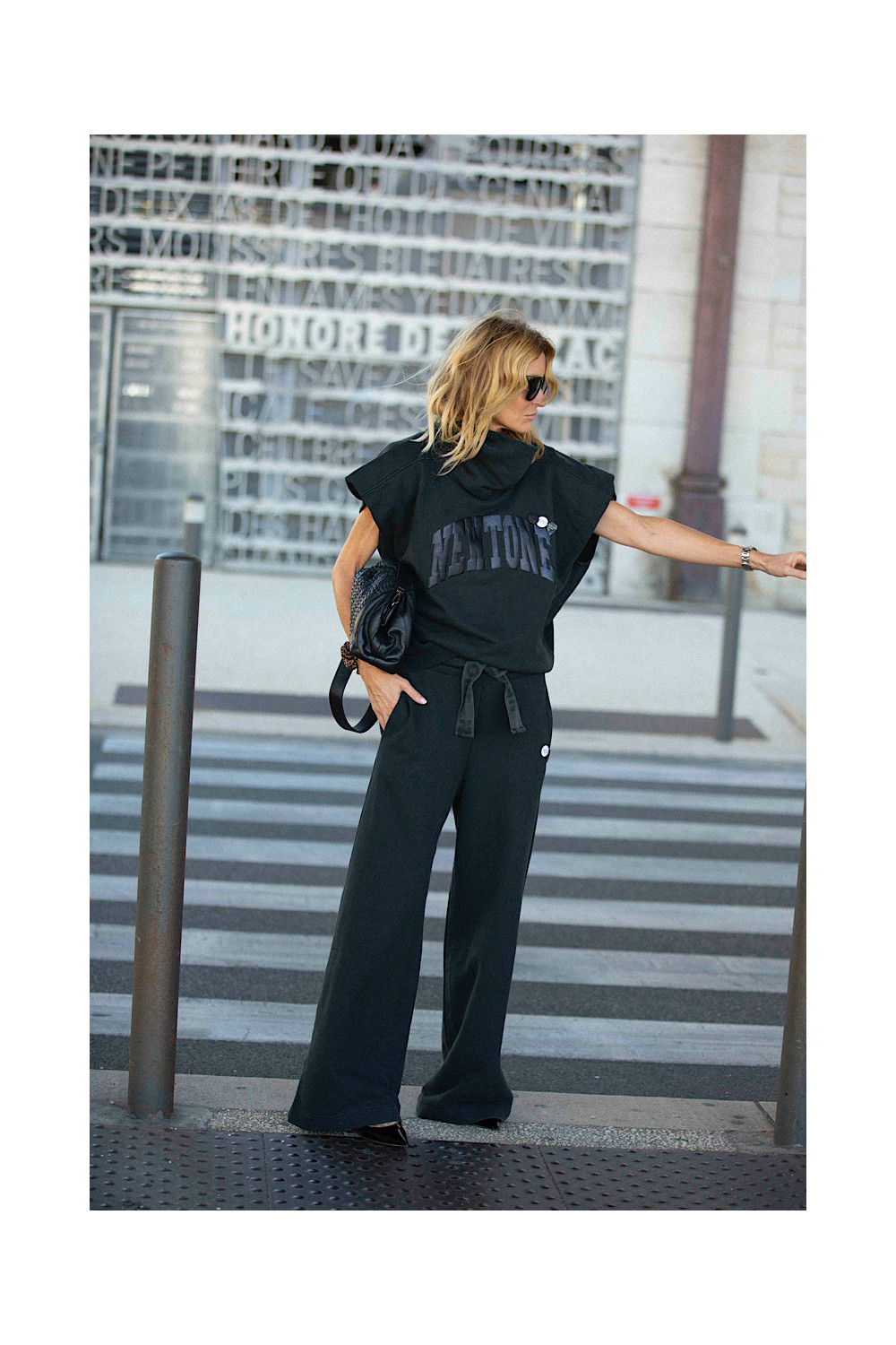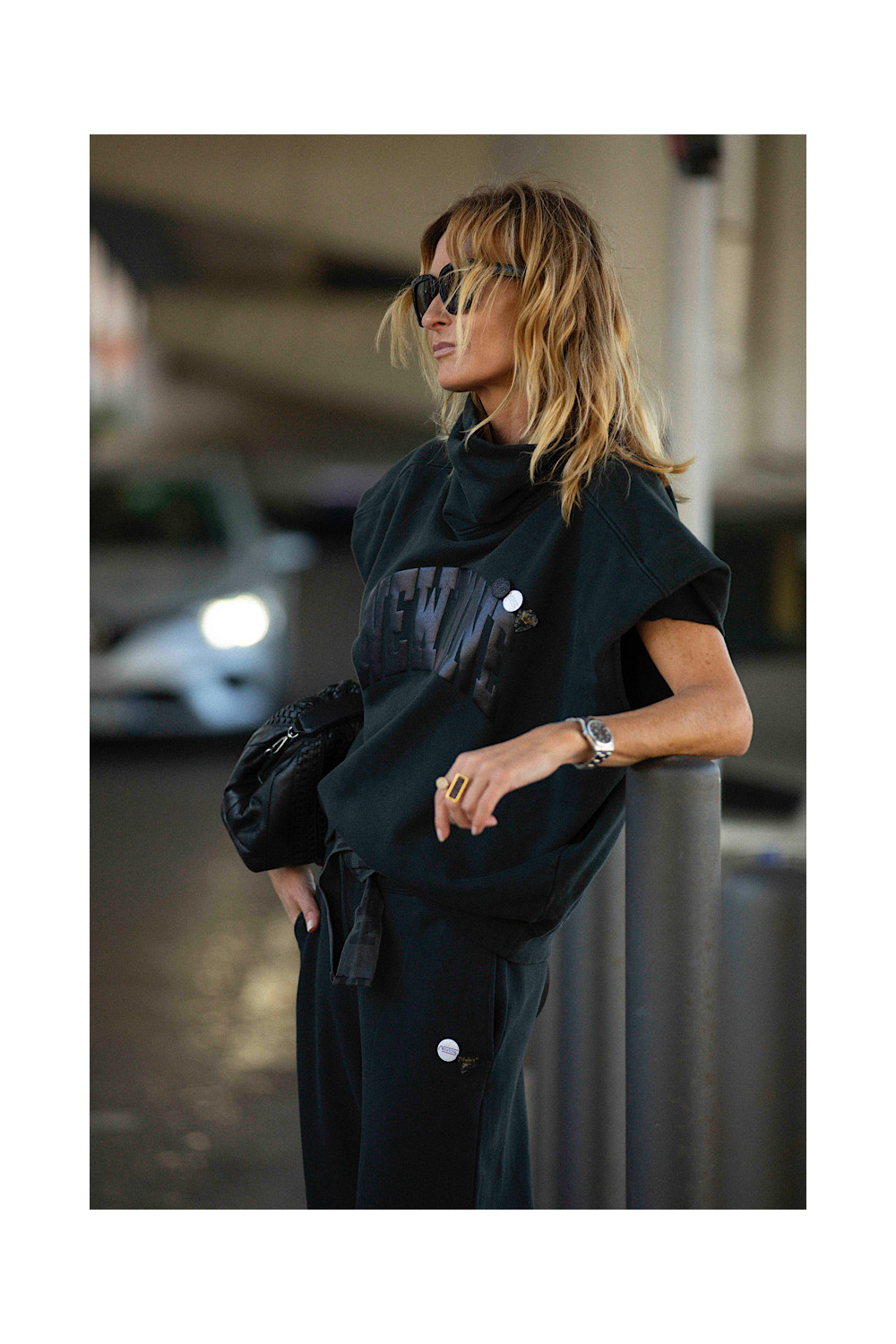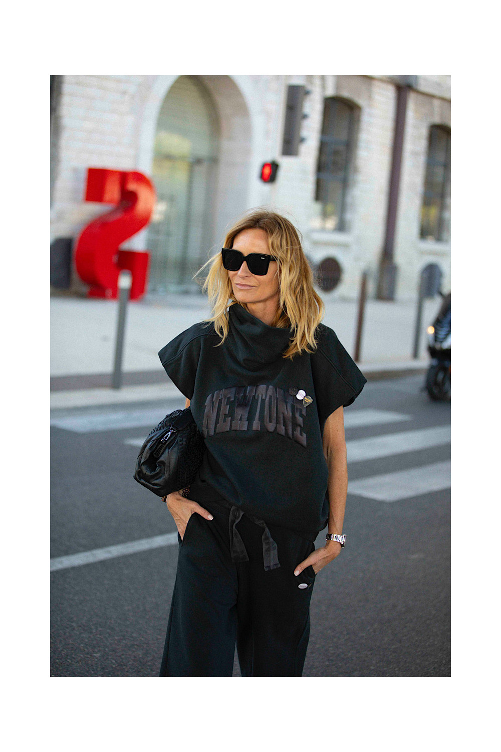 Caractéristiques : Sweatshirt noir sans manche, Sweat doux lavé, Sans manches, Col montant, Imprimé foil and puff, Un badge et un médiator coté coeur.