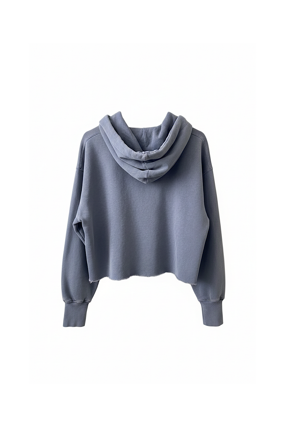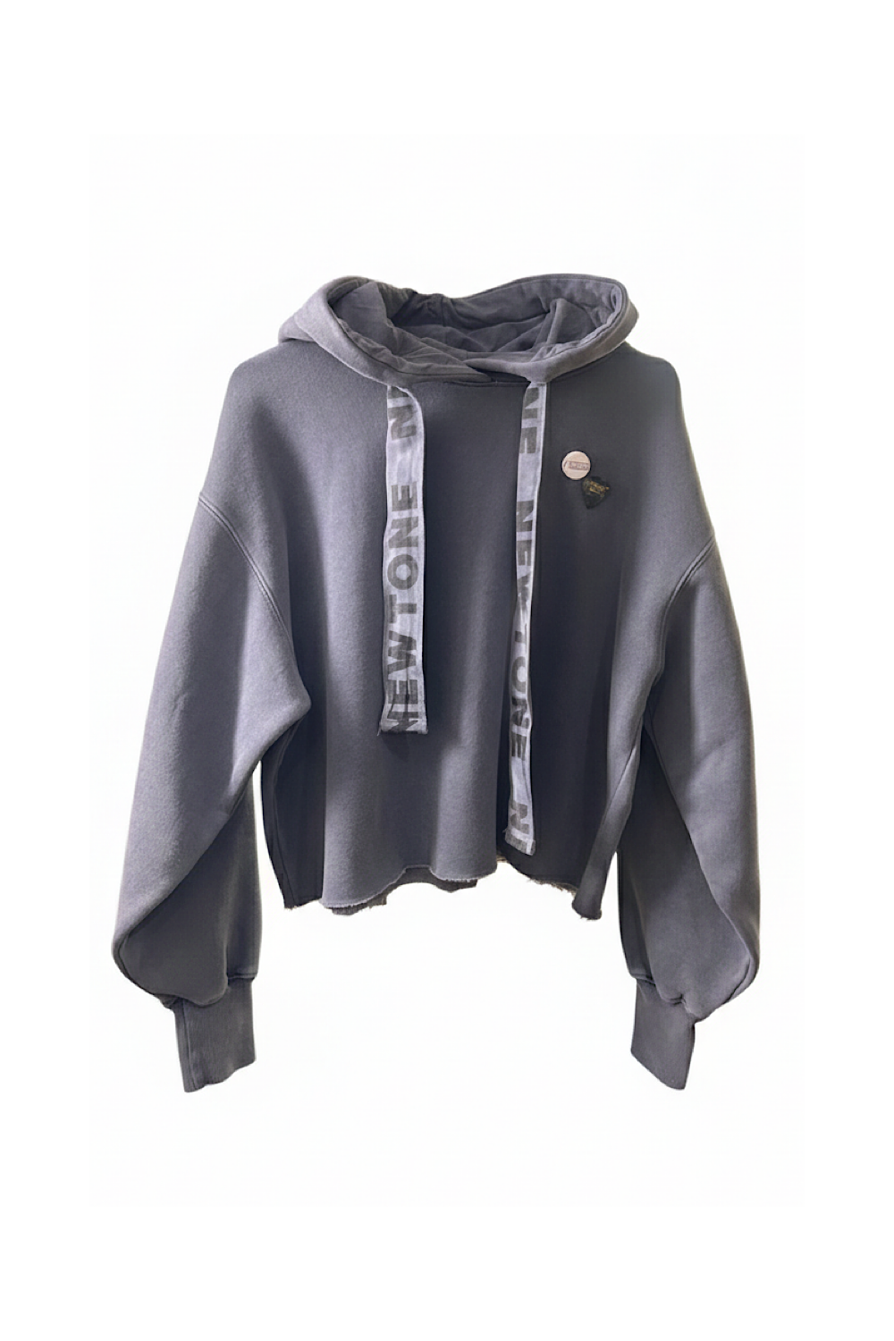 Caractéristique : capuche, coupe oversize, finition bord franc, resserrés aux poignets, lien de serrage au niveau de la capuche, 2 badges côté coeur