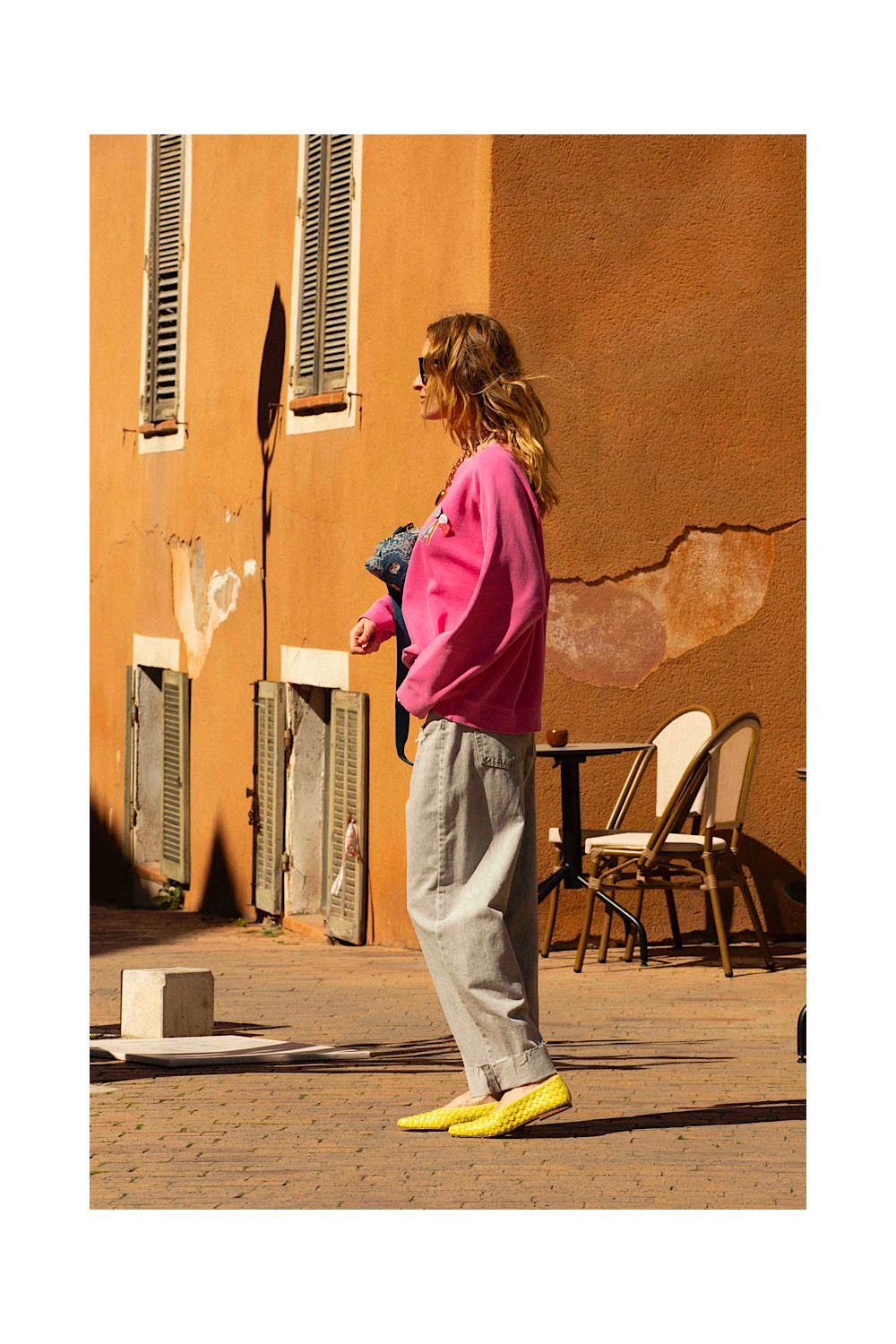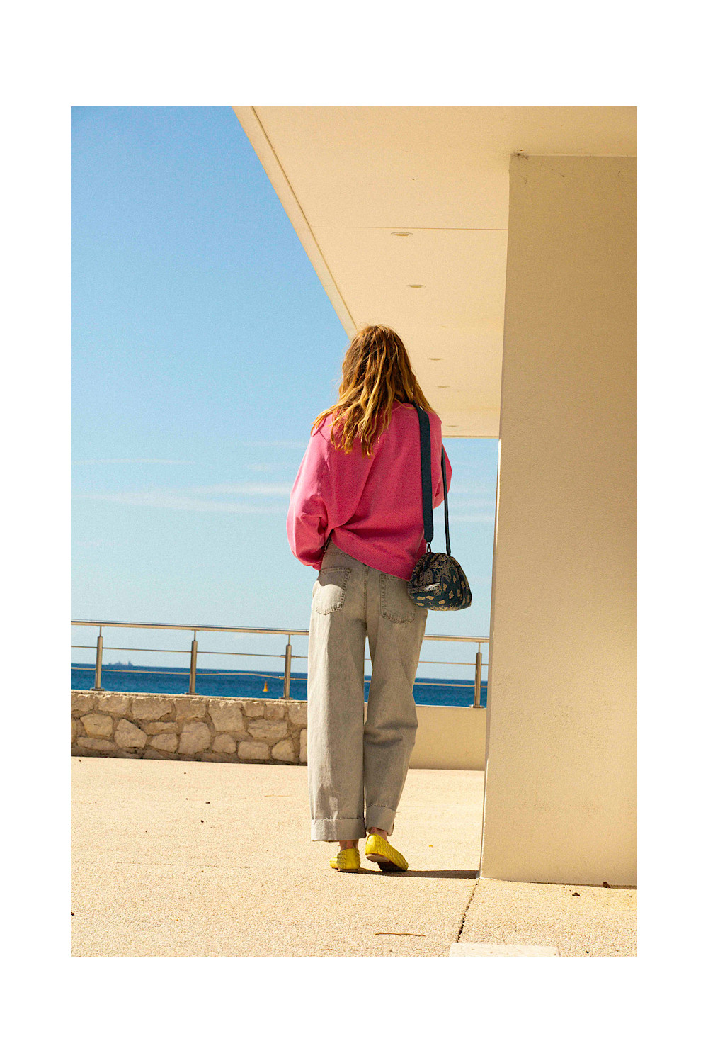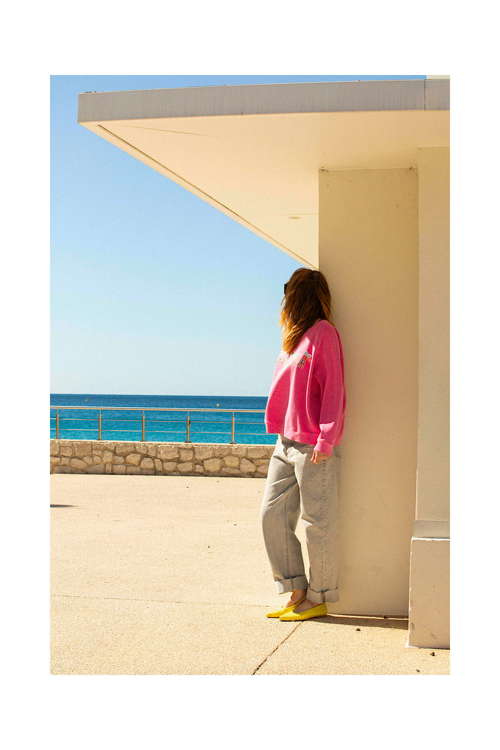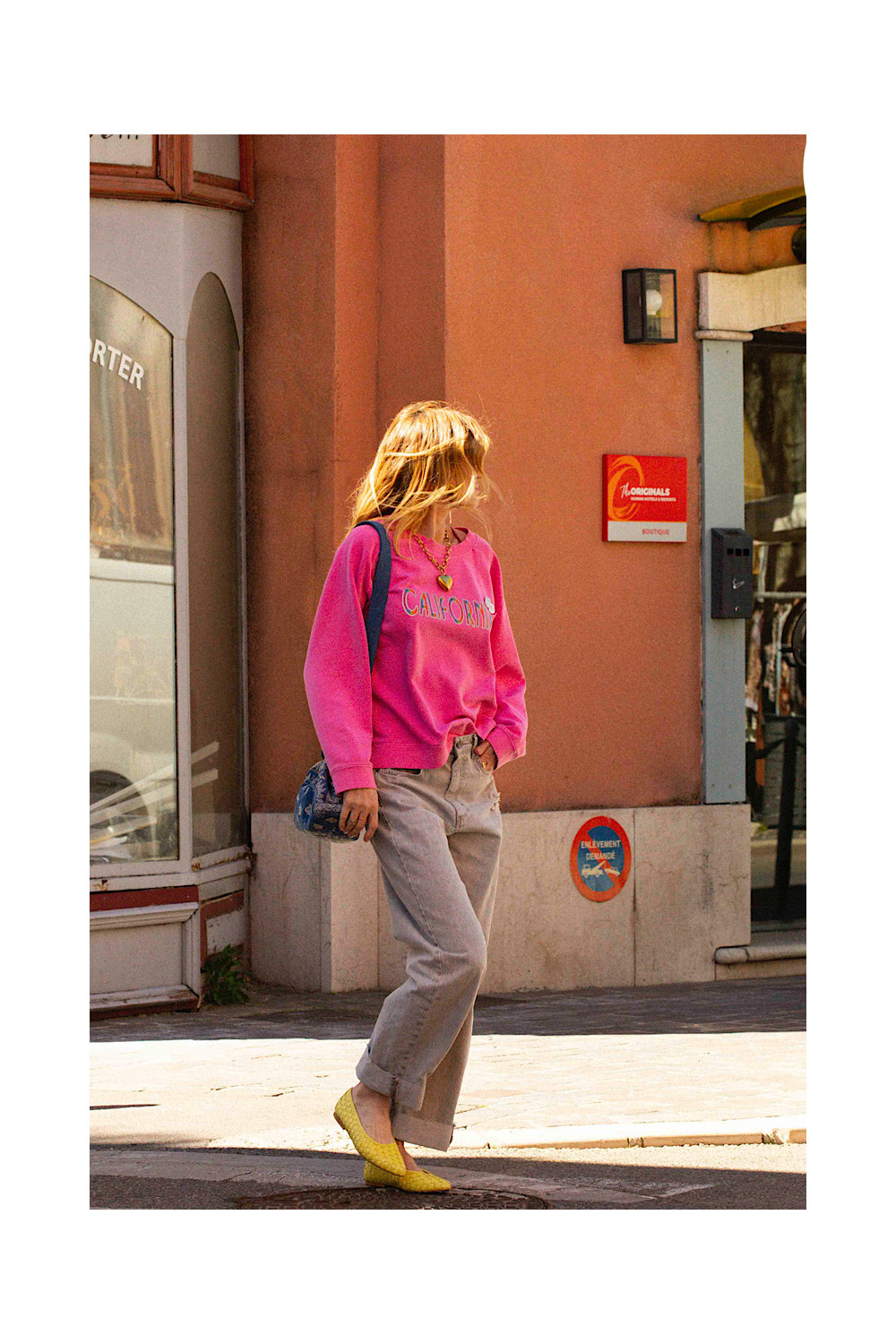 Sweatshirt Egger couleur fuschia avec flocage California en paillettes.