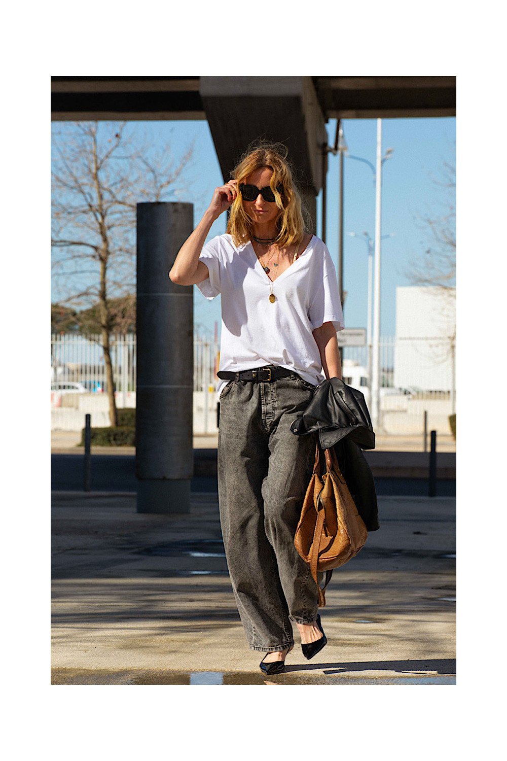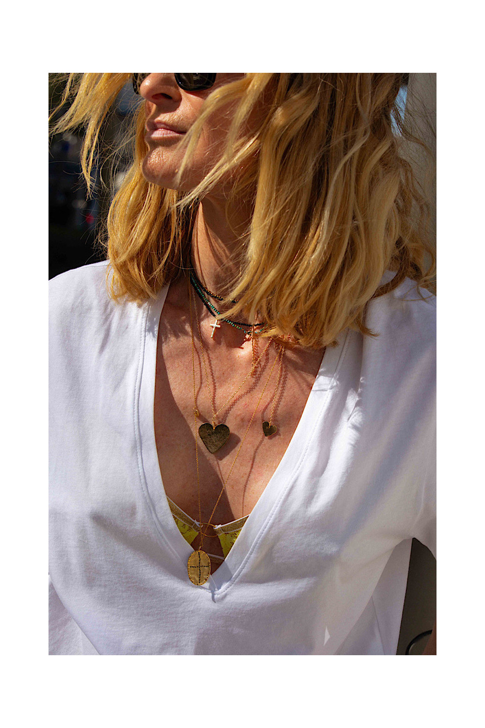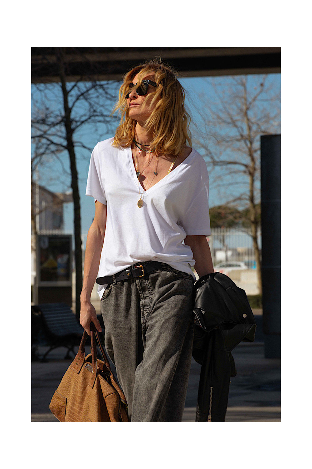 Caractéristiques : long col V, tshirt manches courtes, blanc