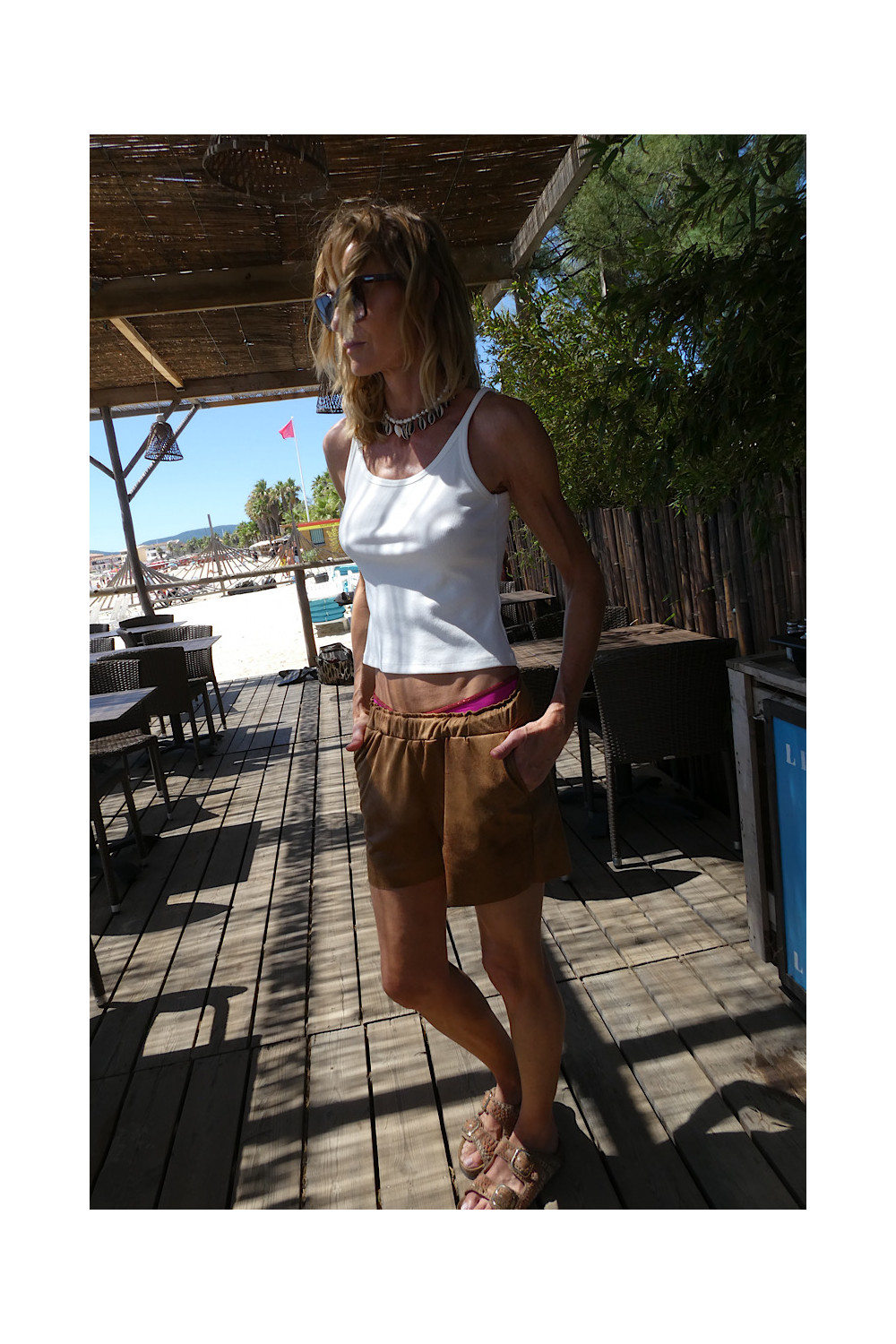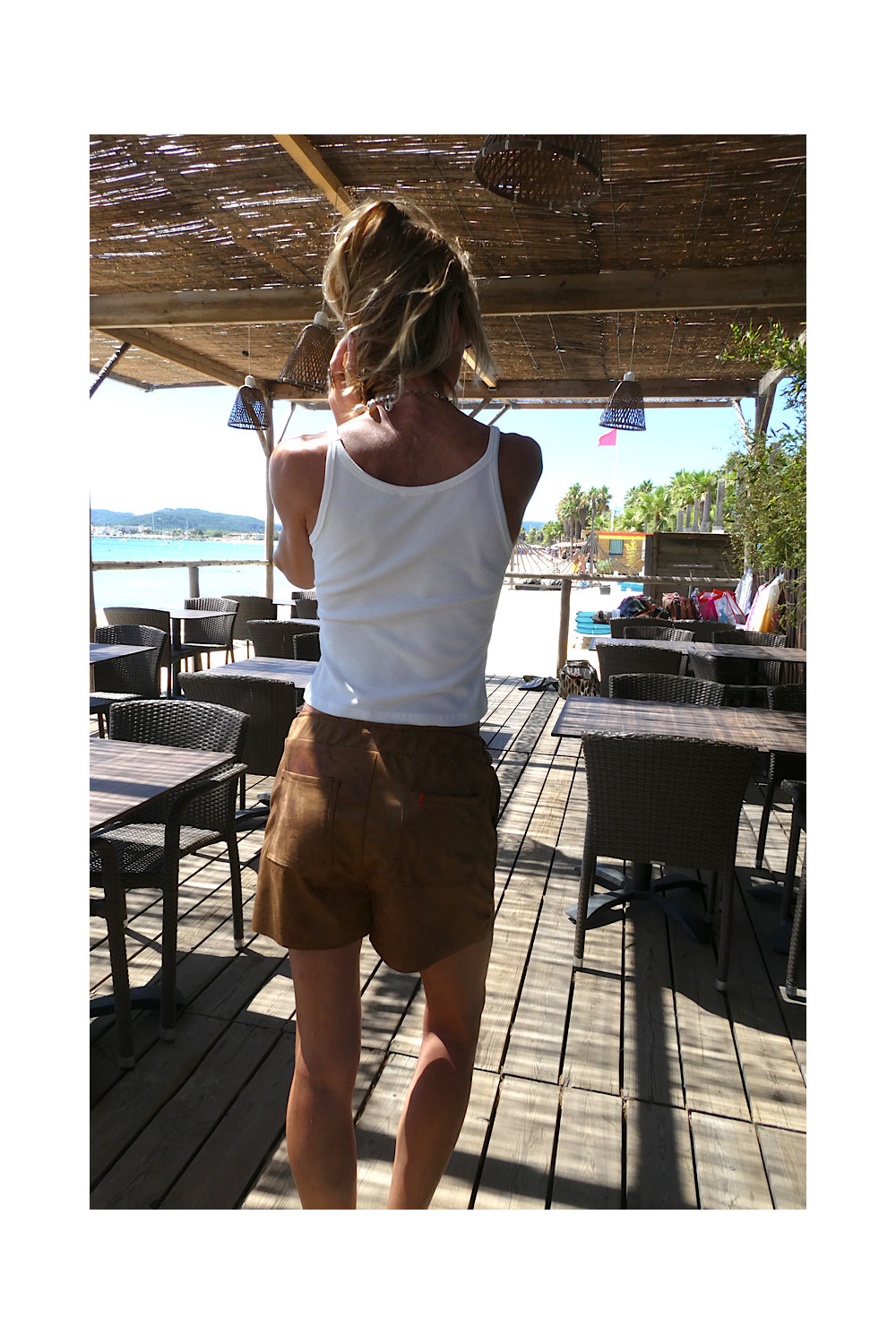 Caractéristiques : débardeur blanc, sans manches, col rond, fines bretelles.