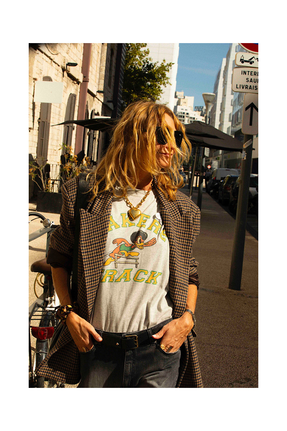 Caractéristiques : tissu doux lavé, manches courtes, col rond, 2 badges et un médiator côté coeur.