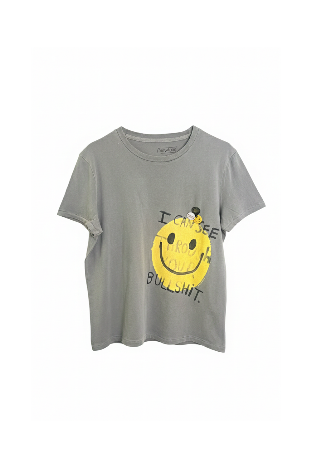 Caractéristiques : tissu lavé, col, manches et bas avec des usures, manches courtes, col rond, imprimé pailleté, 2 badges et un médiator côté coeur
