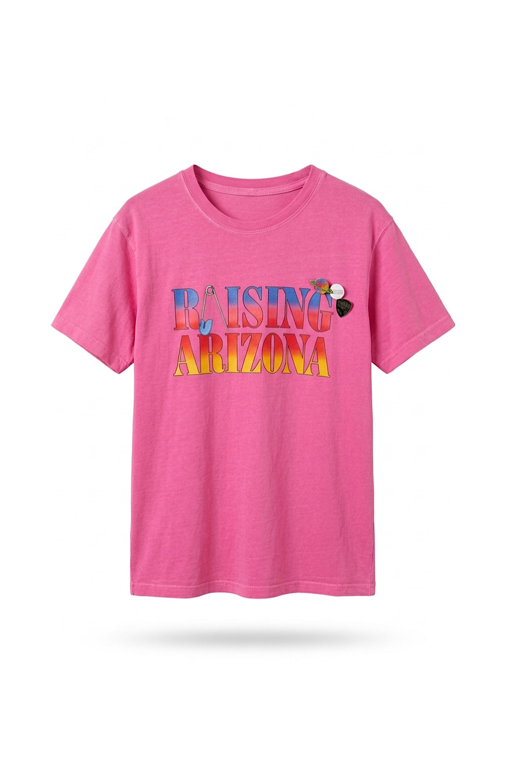 Col rond, manches courtes, tshirt rose flashy ,imprimé avec couleurs.  Badges Newtone Brand.
